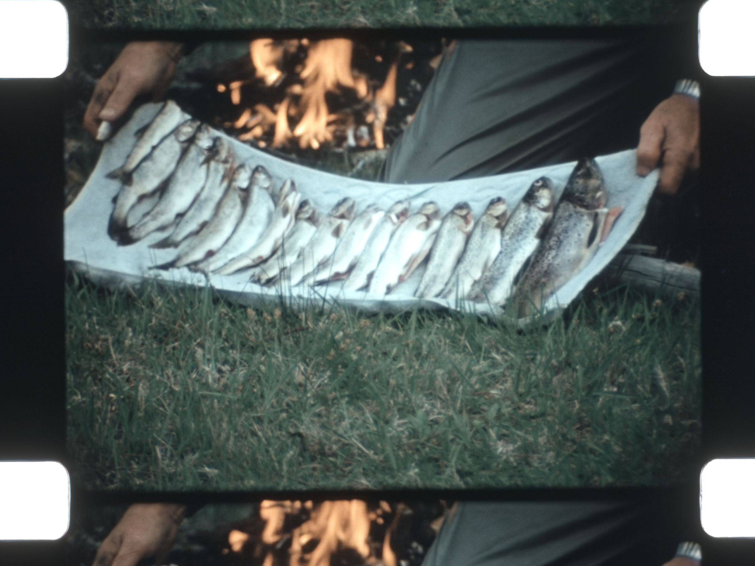 11:20–12:30 — Campfire setup and family fishing trip shots.