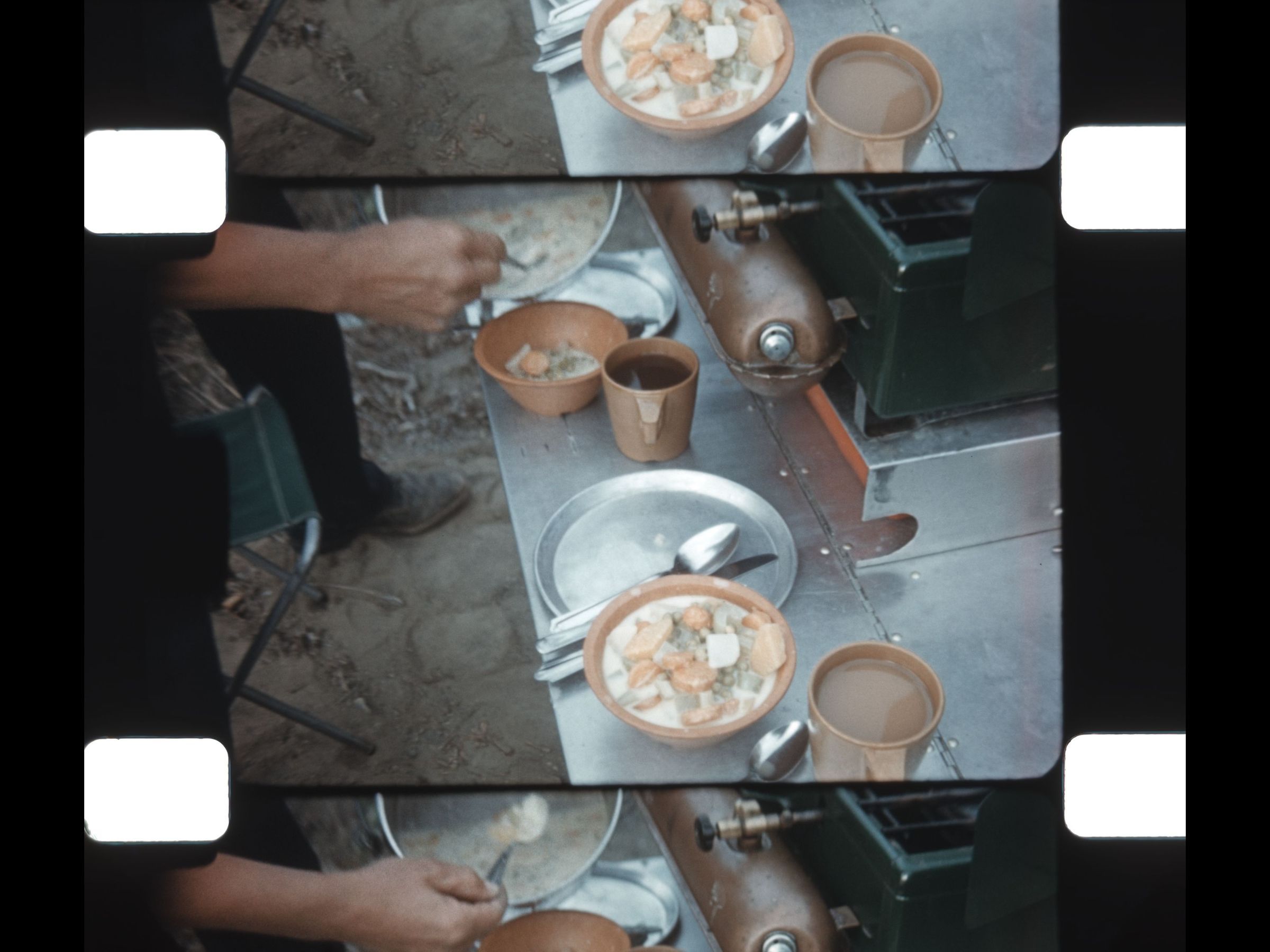 Preparing a cooking meal on Coleman cook stove