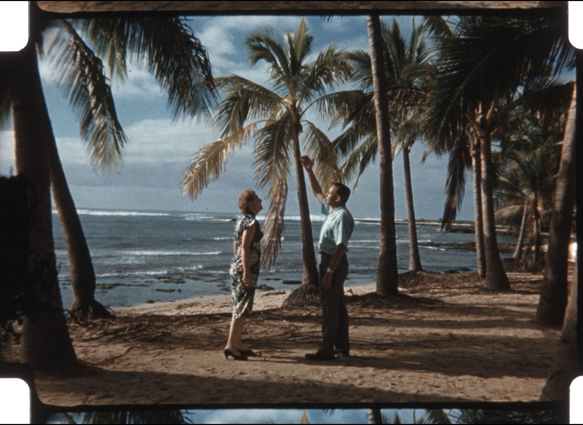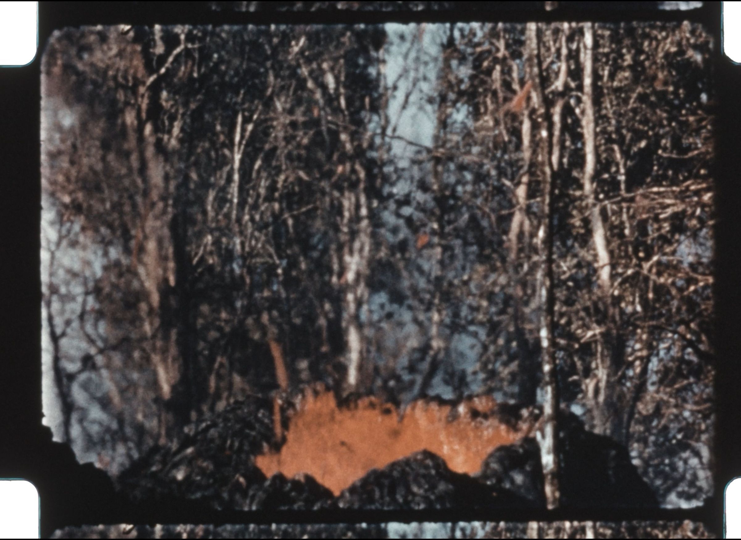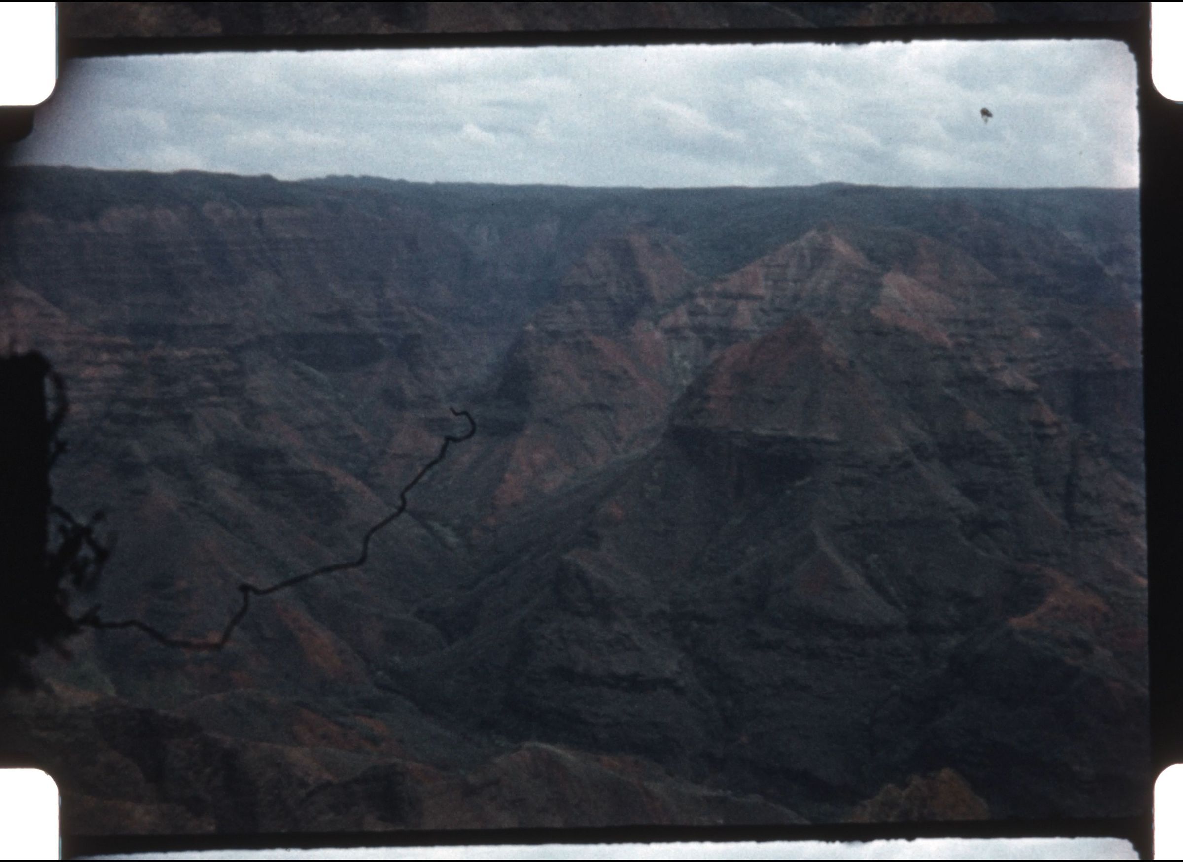 A hair is in many of the shots in the early frames. The end has a collection of volcano shots cut in the edit by Carl but are from a print.