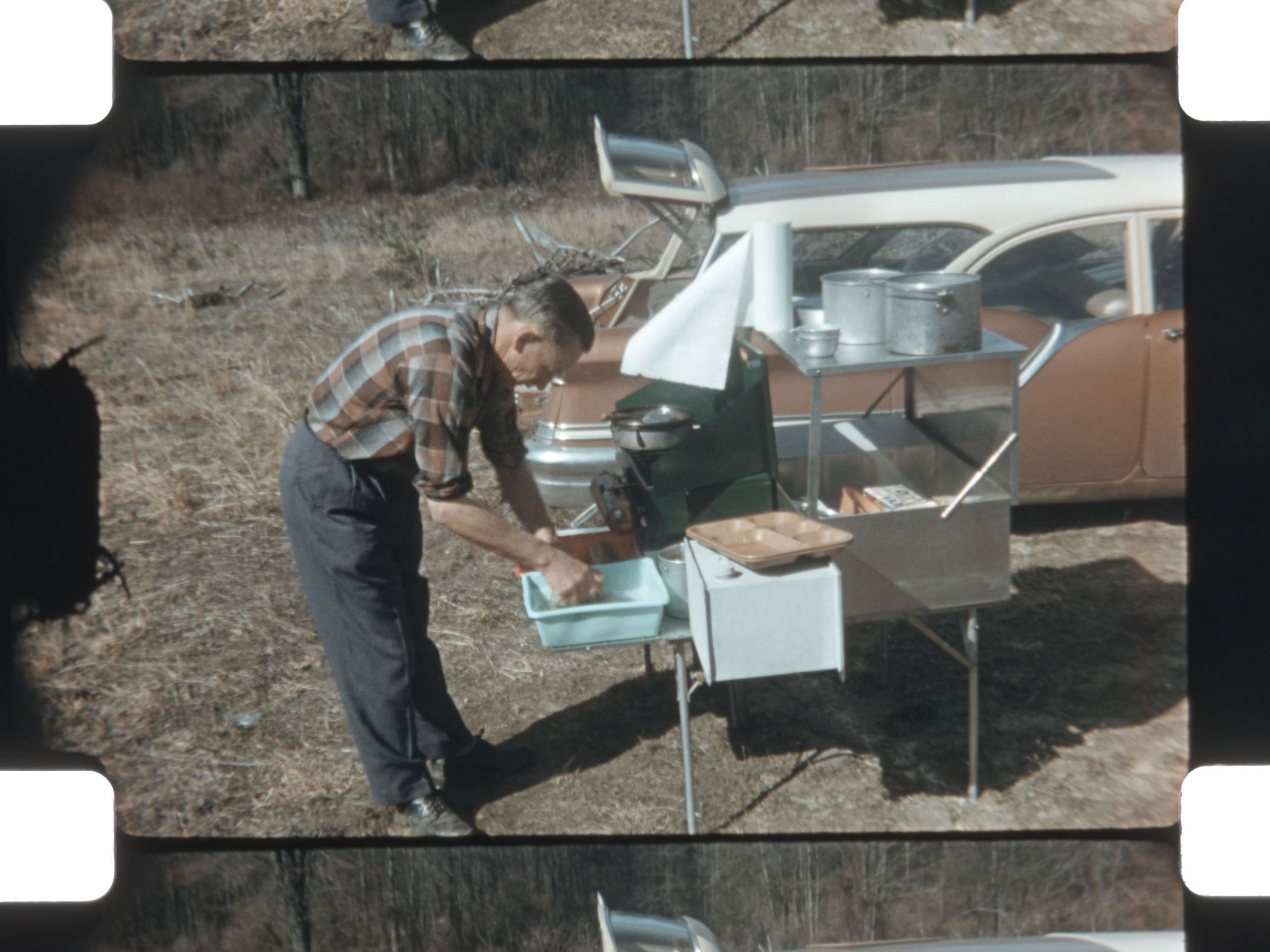 washing campsite dishes
