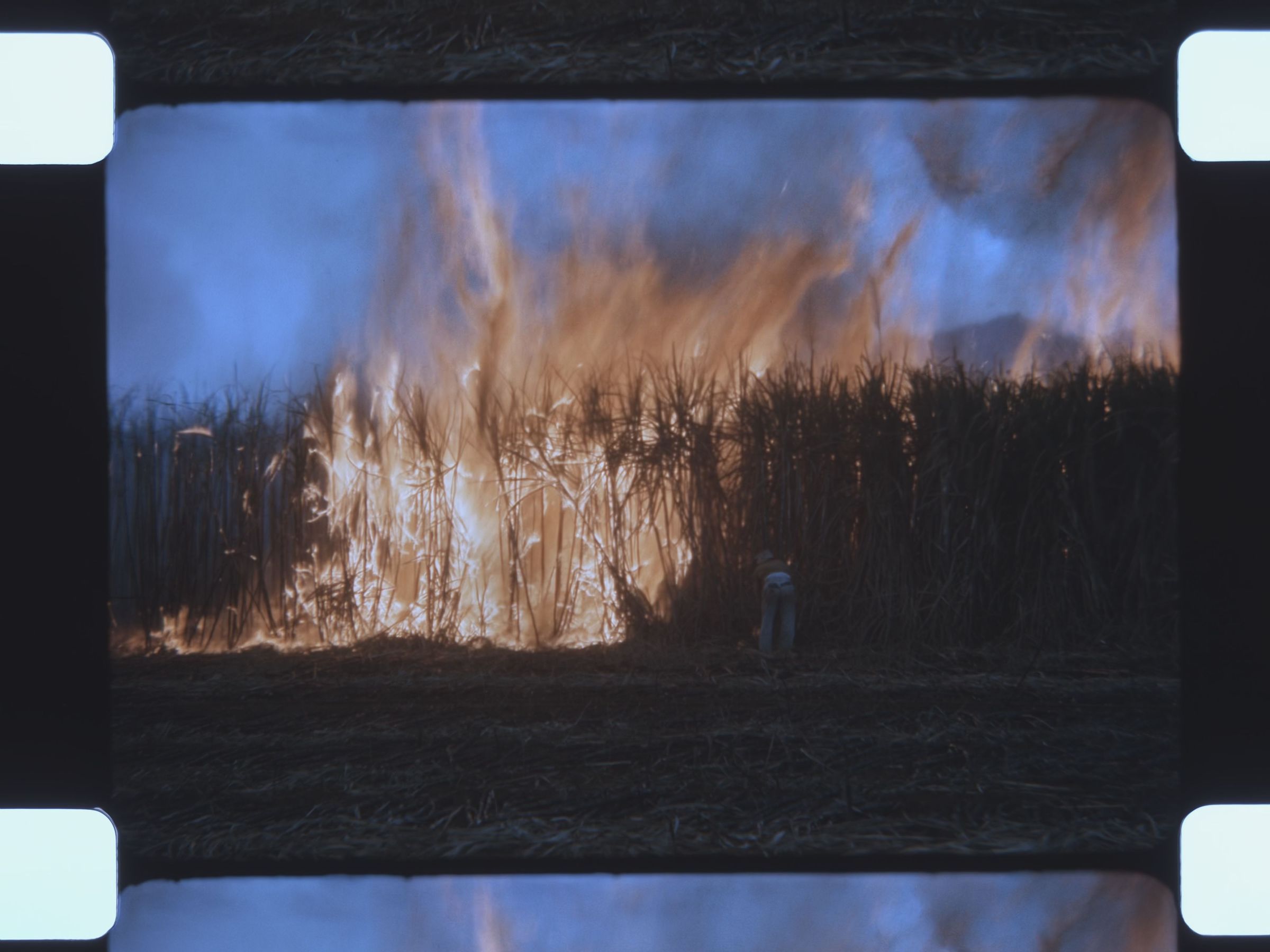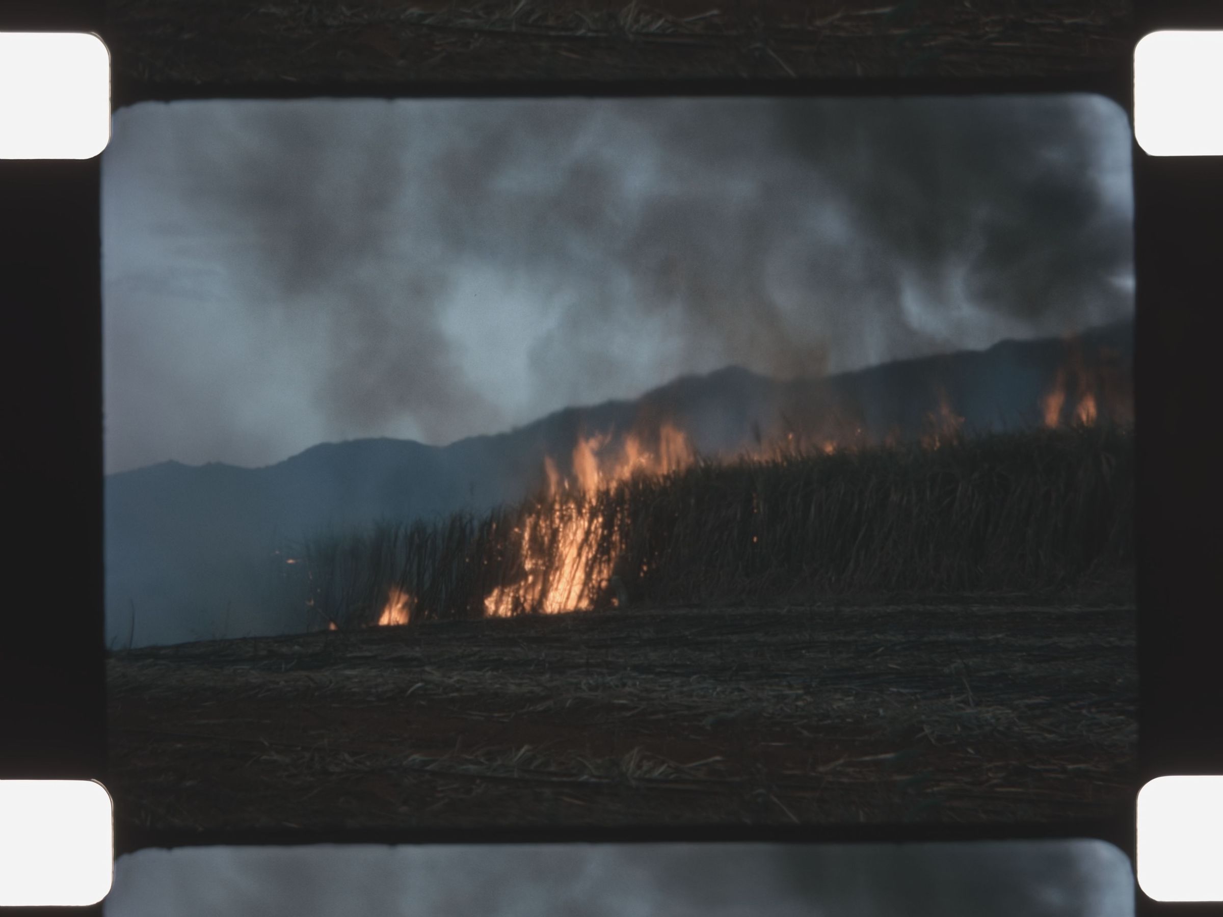a fire burning tall grass or crops