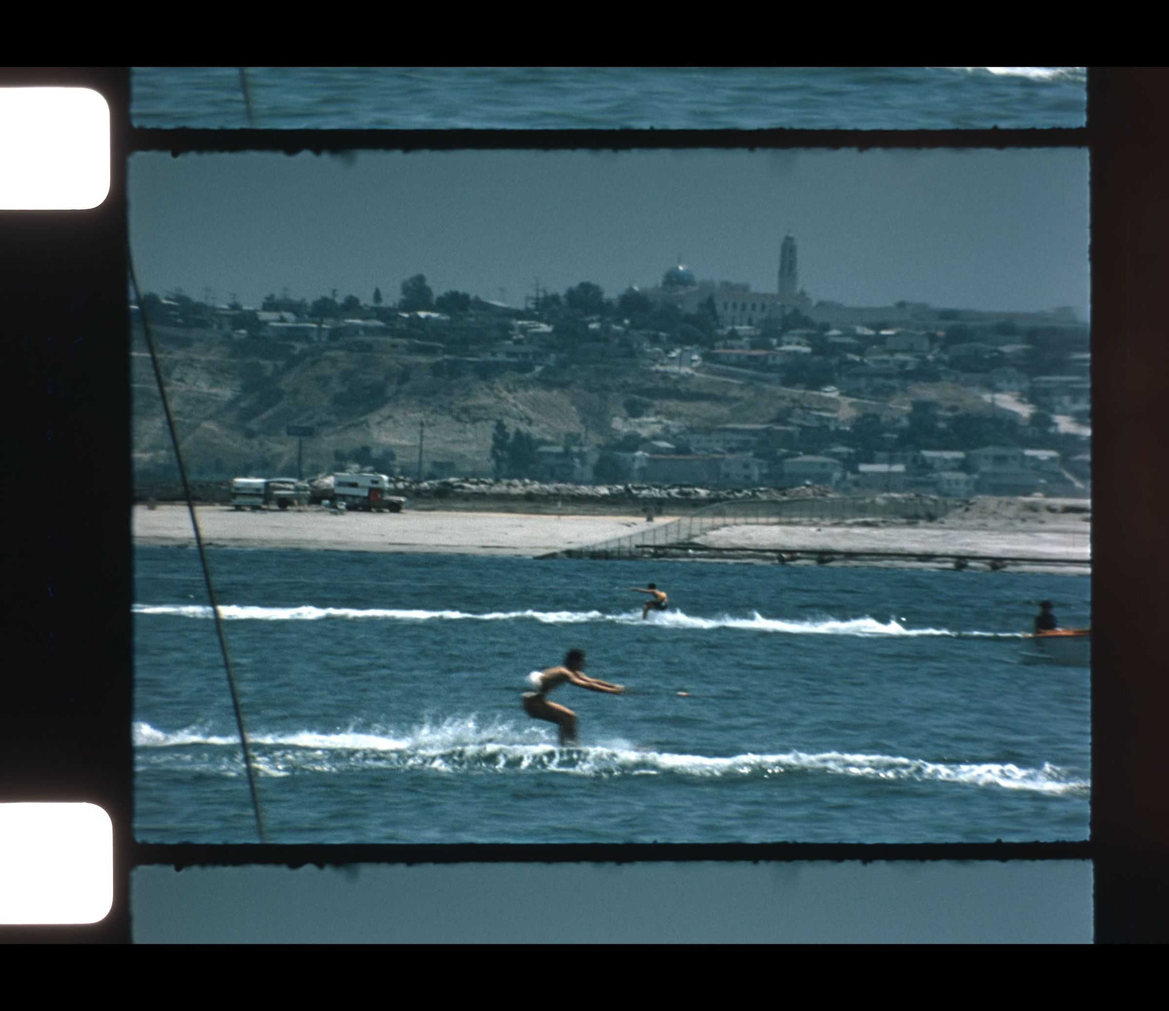 Louis Knobbe Collection people water skiing in the ocean people on the beach San Diego 1976