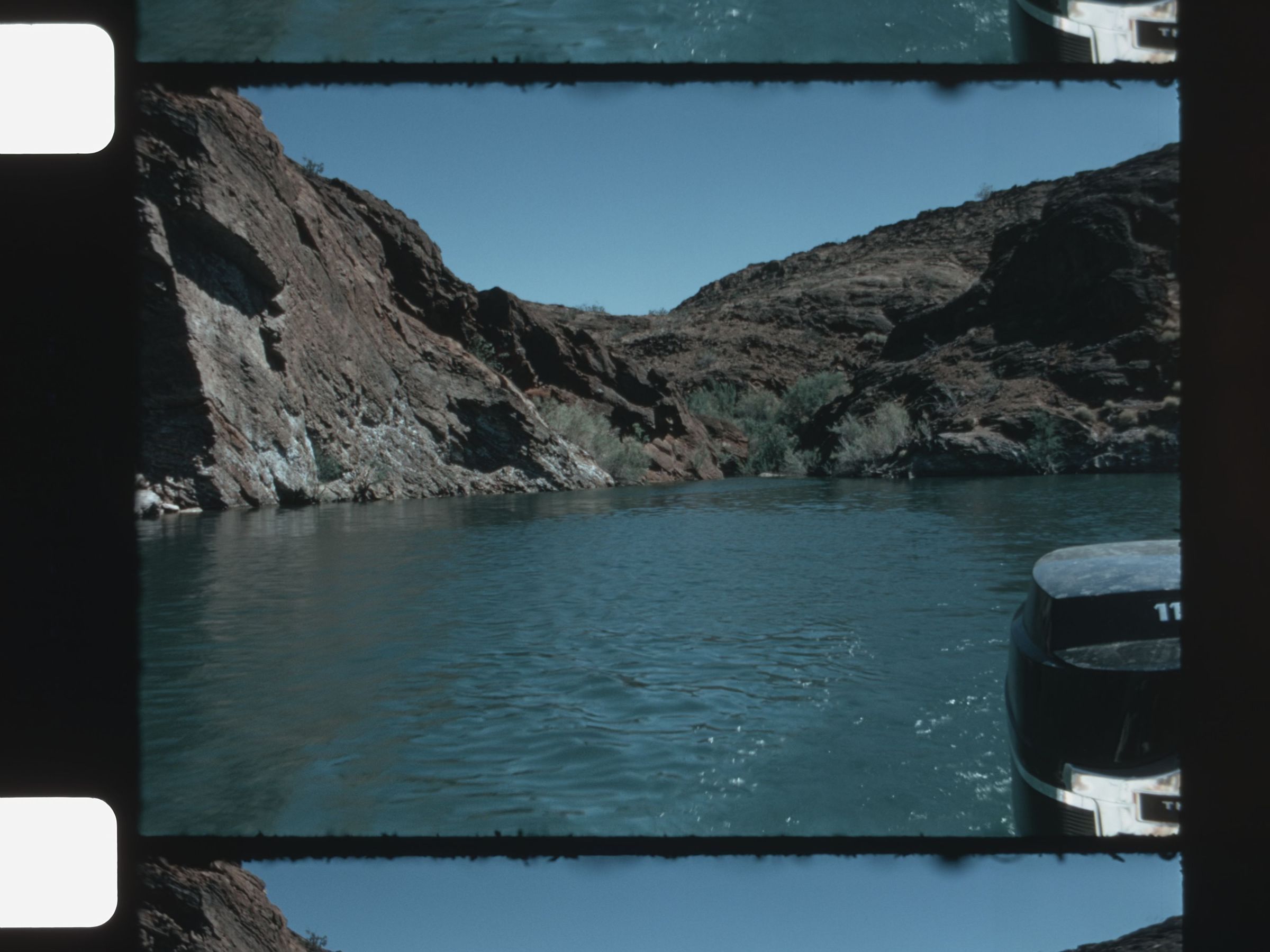 Louis Knobbe Collection Lake Havasu April 1974 leaving secret lagoon boating on the lake with canyons surrounding