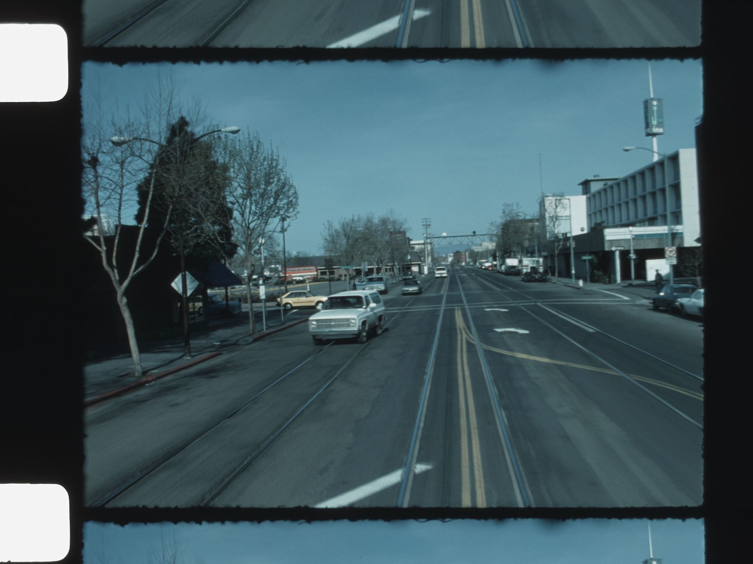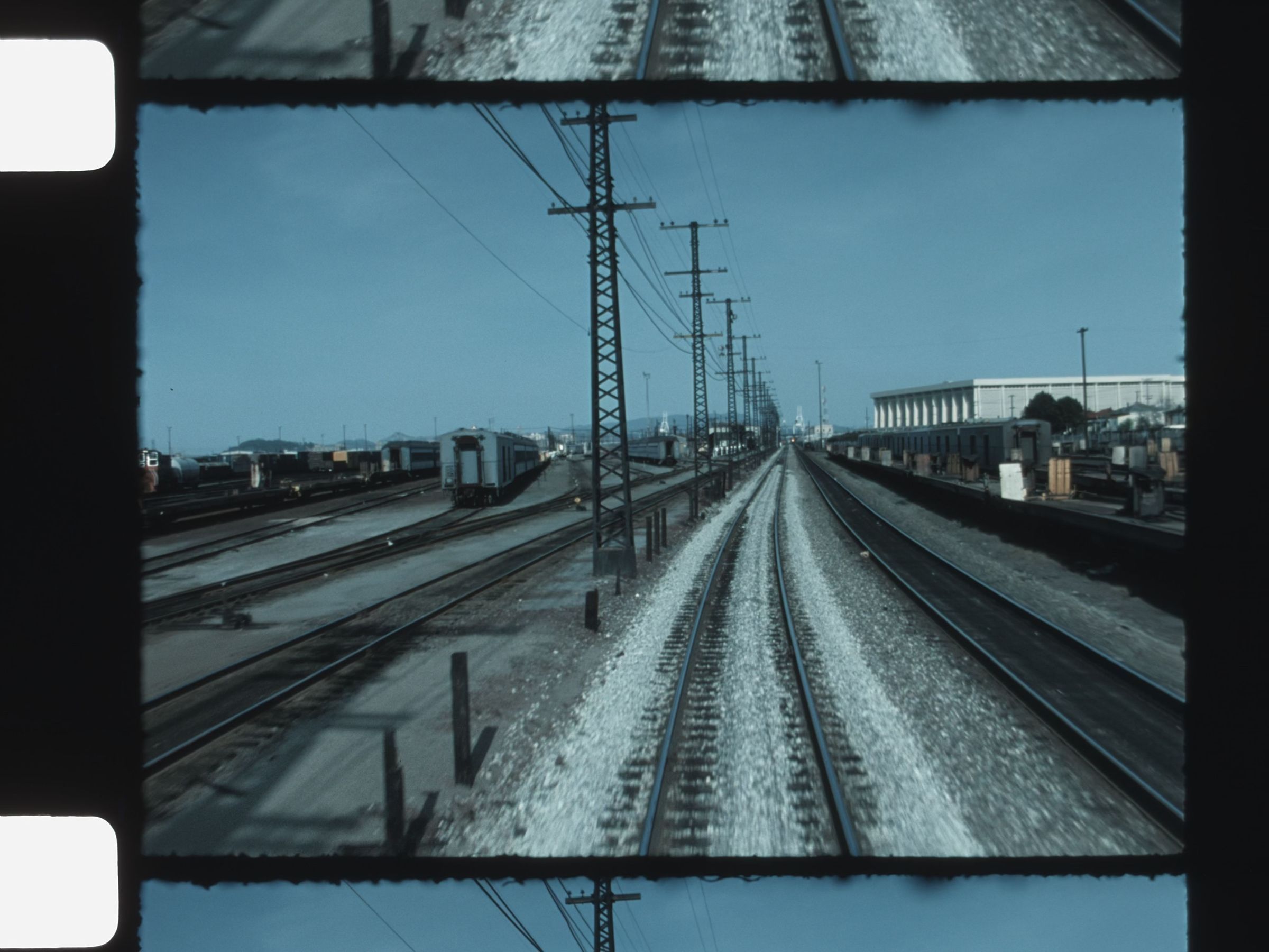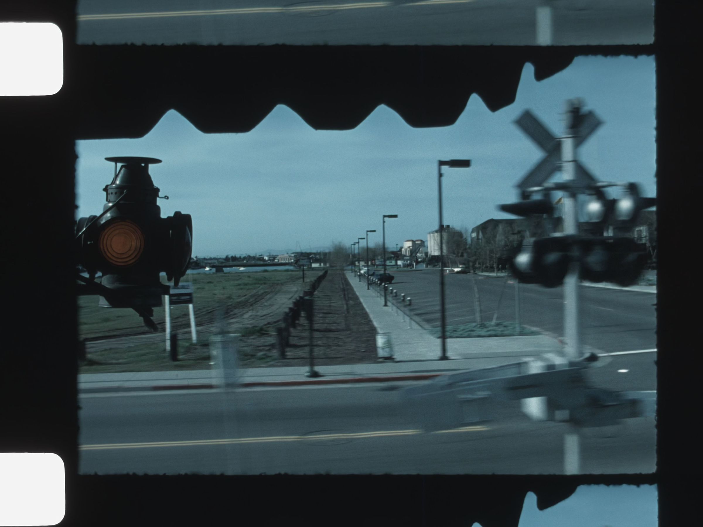 view of businesses and town from train passing byMotion Picture Details