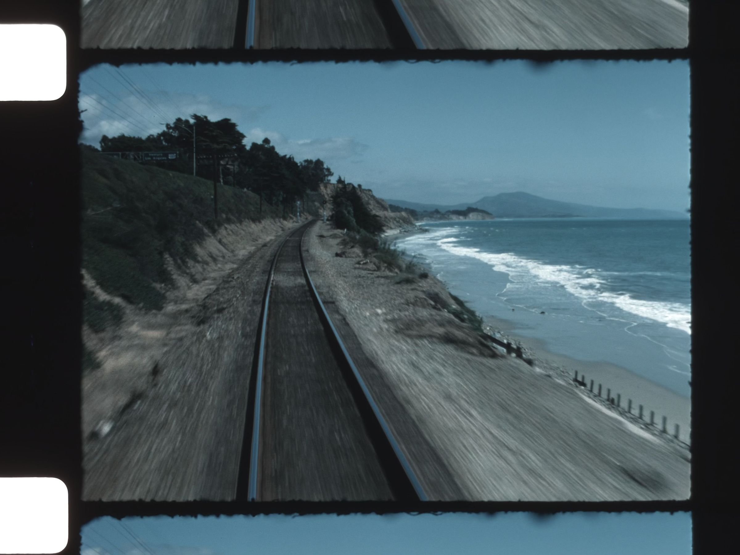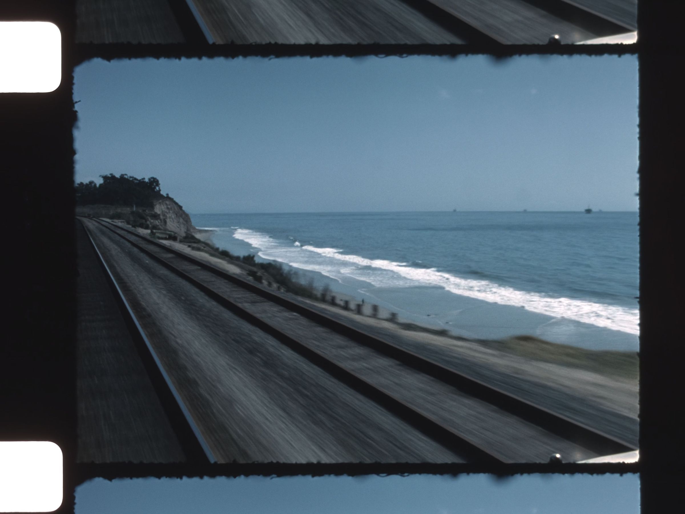 Louis Knobbe Collection train ride on the Pacific Coast train riding on the tracks train passing by and through communities train passing by the ocean and beach