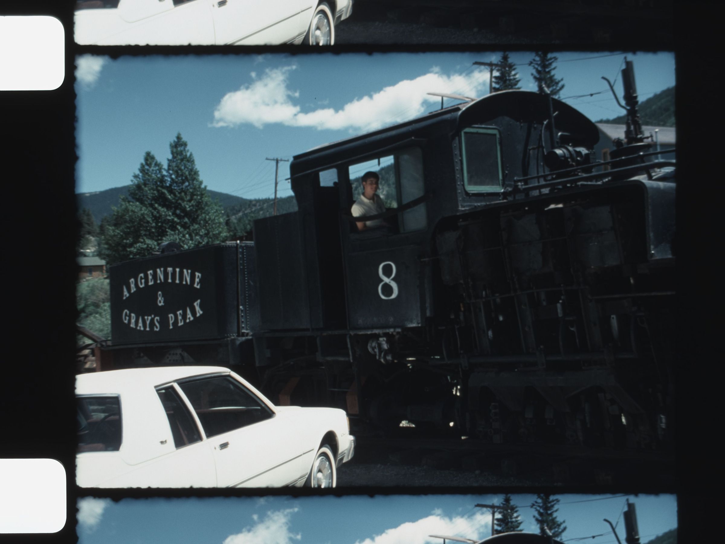 Louis Knobbe Collection steam train river boat views train at the station man in the train waving railroad tracks in the mountains