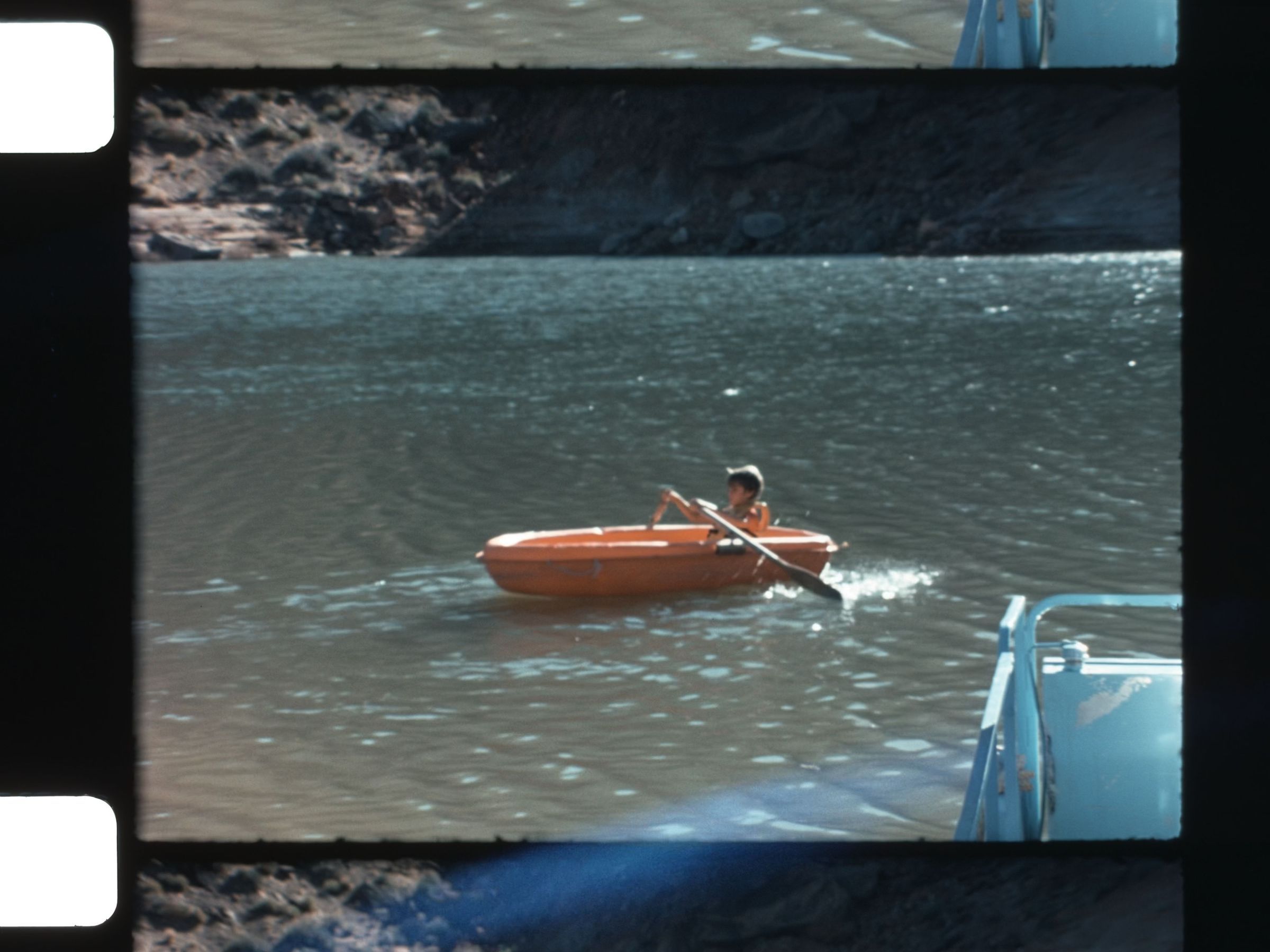 Louis Knobbe Collection 1974 kids playing in the water and swimming kid rowing a rowboat on the lake mountain lake