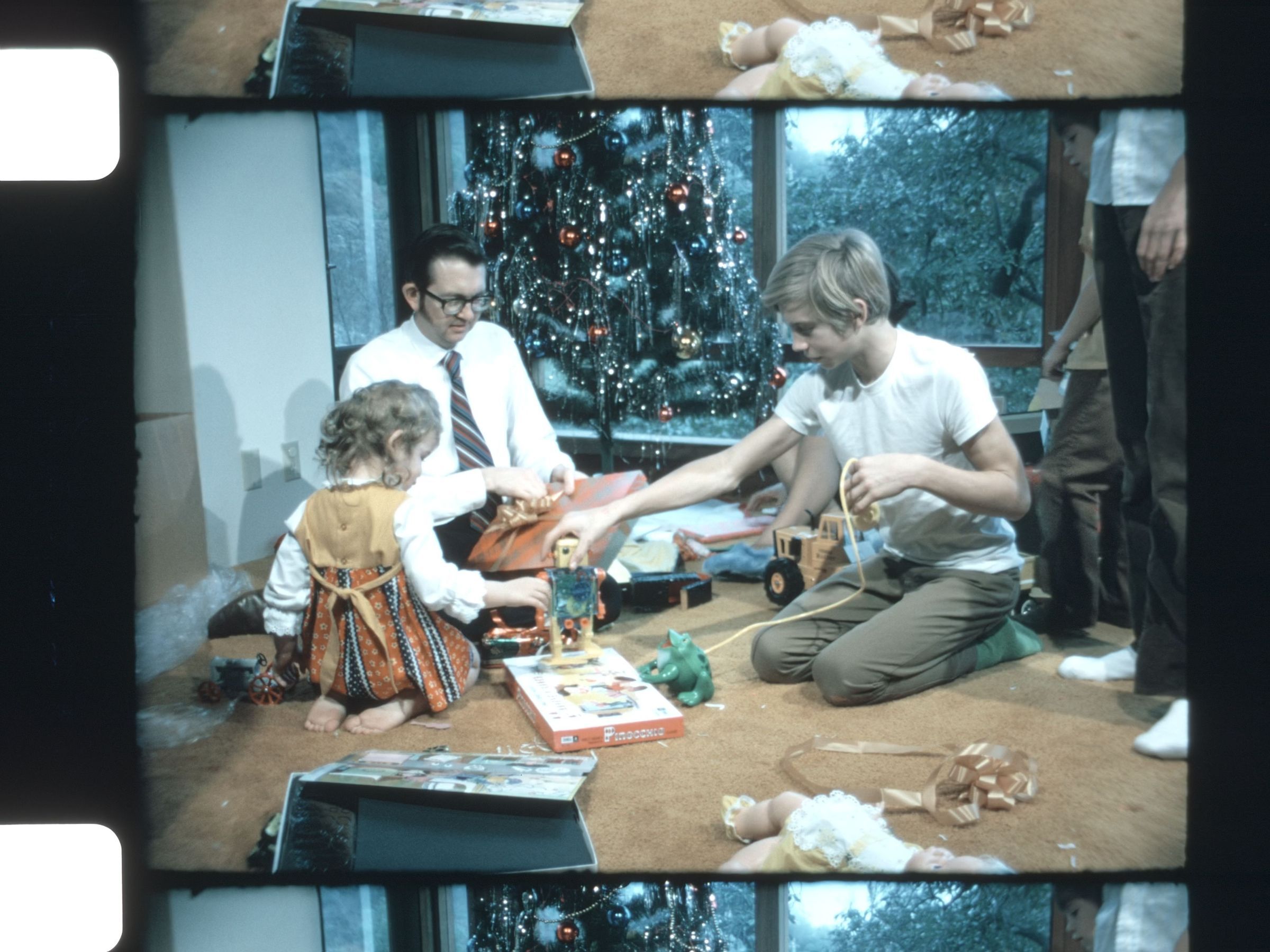 family opening Christmas presents