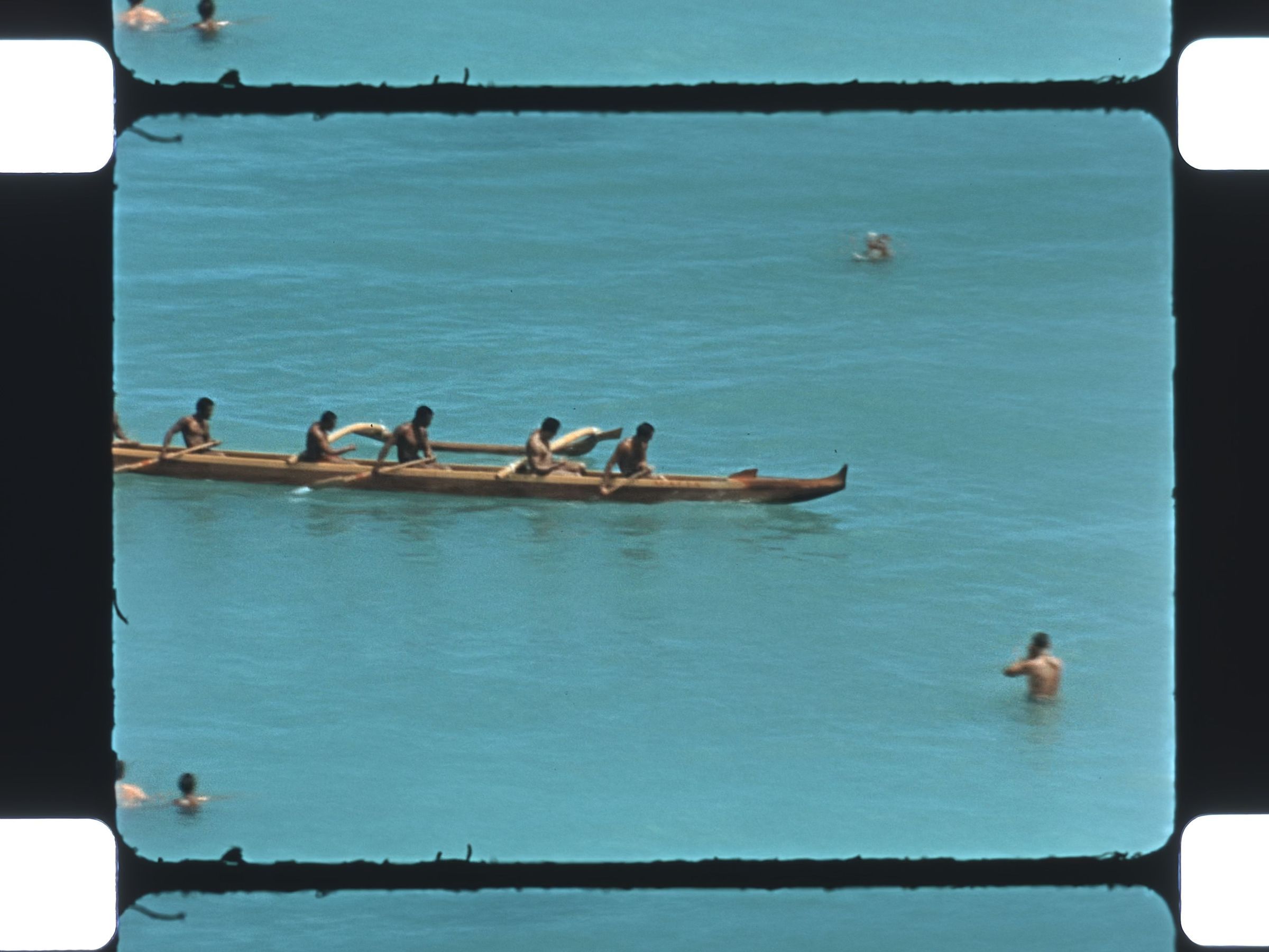 paddling outrigger canoe in the ocean