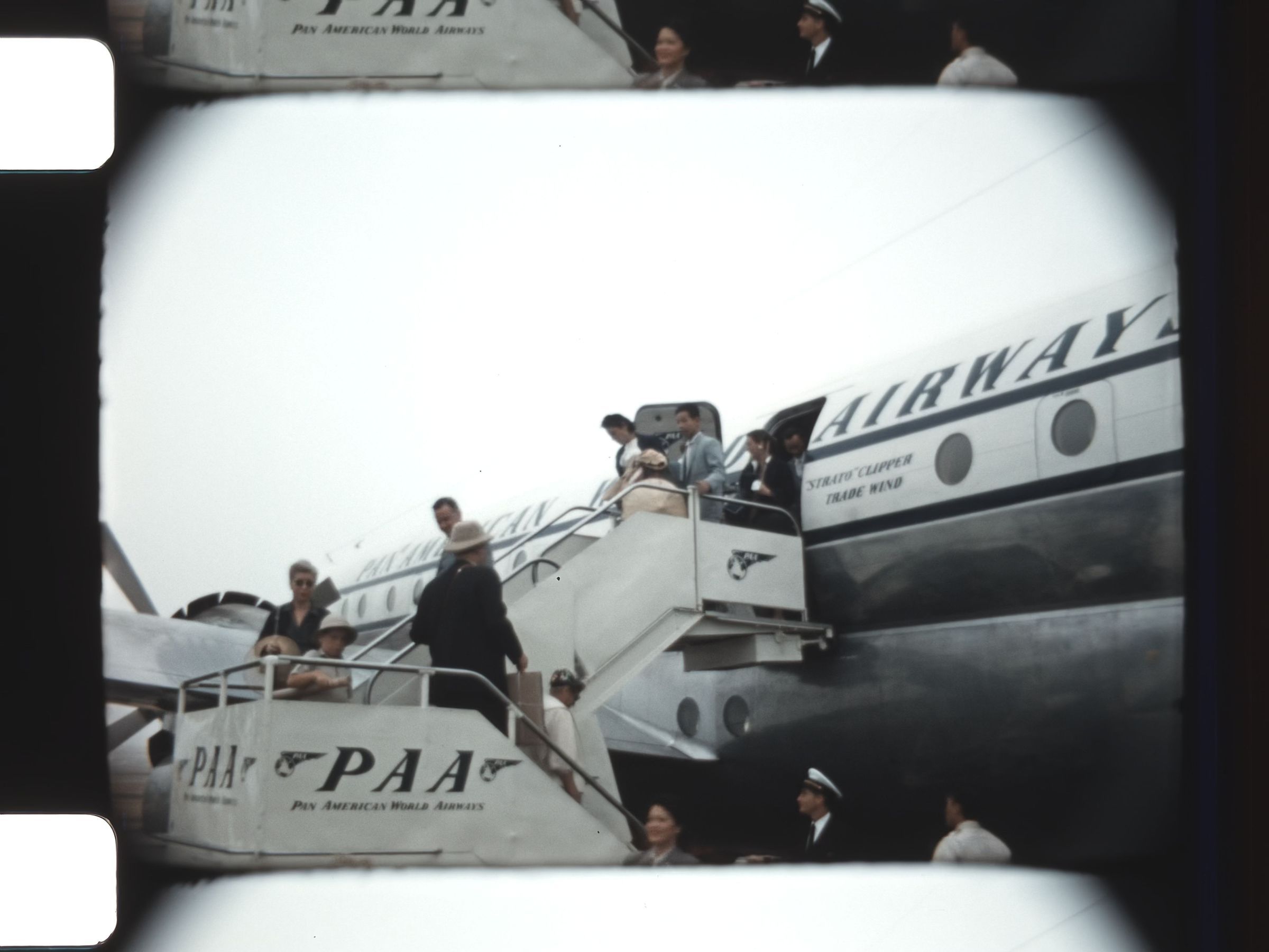 people exiting a Pan American Airline airplane