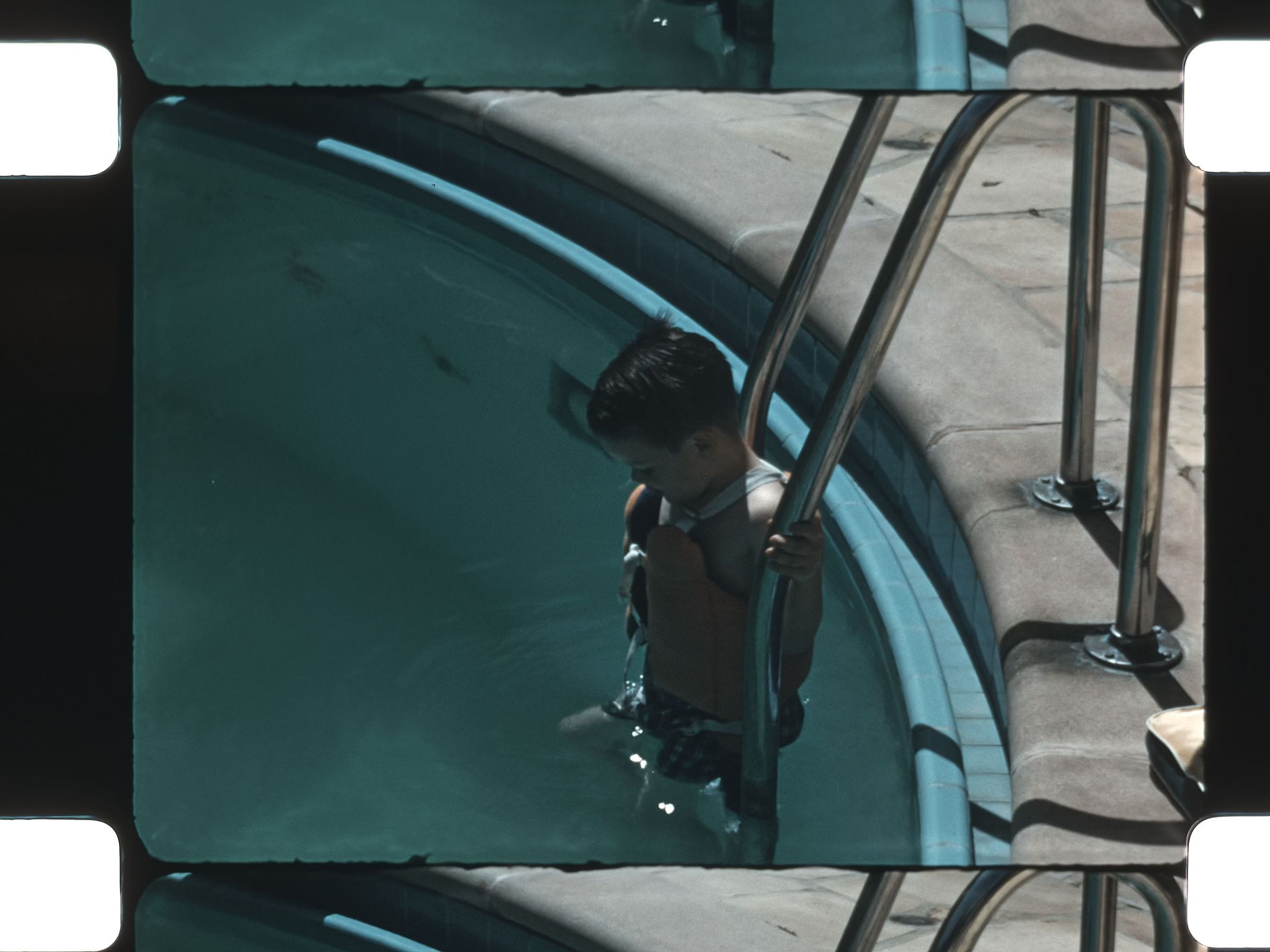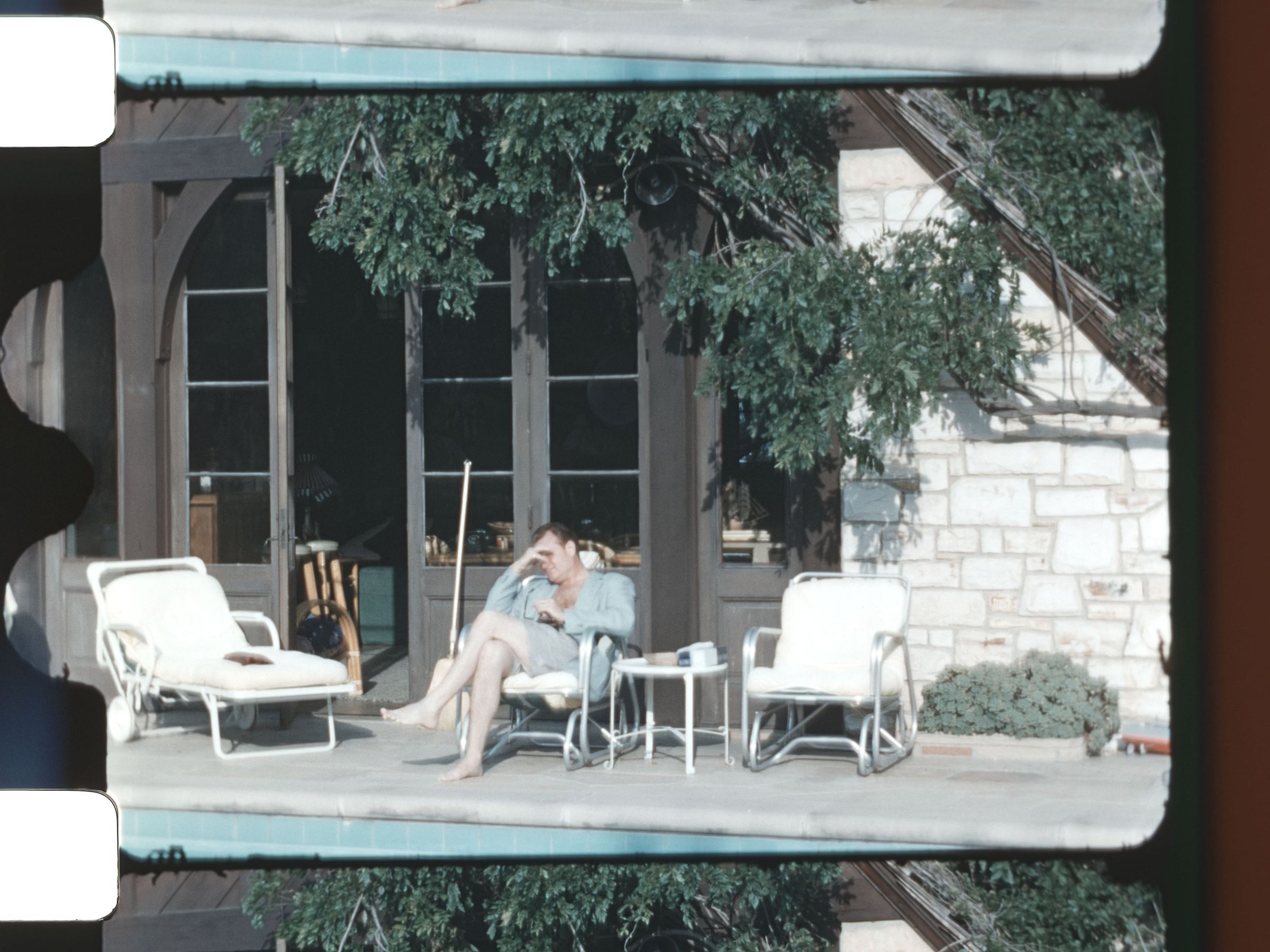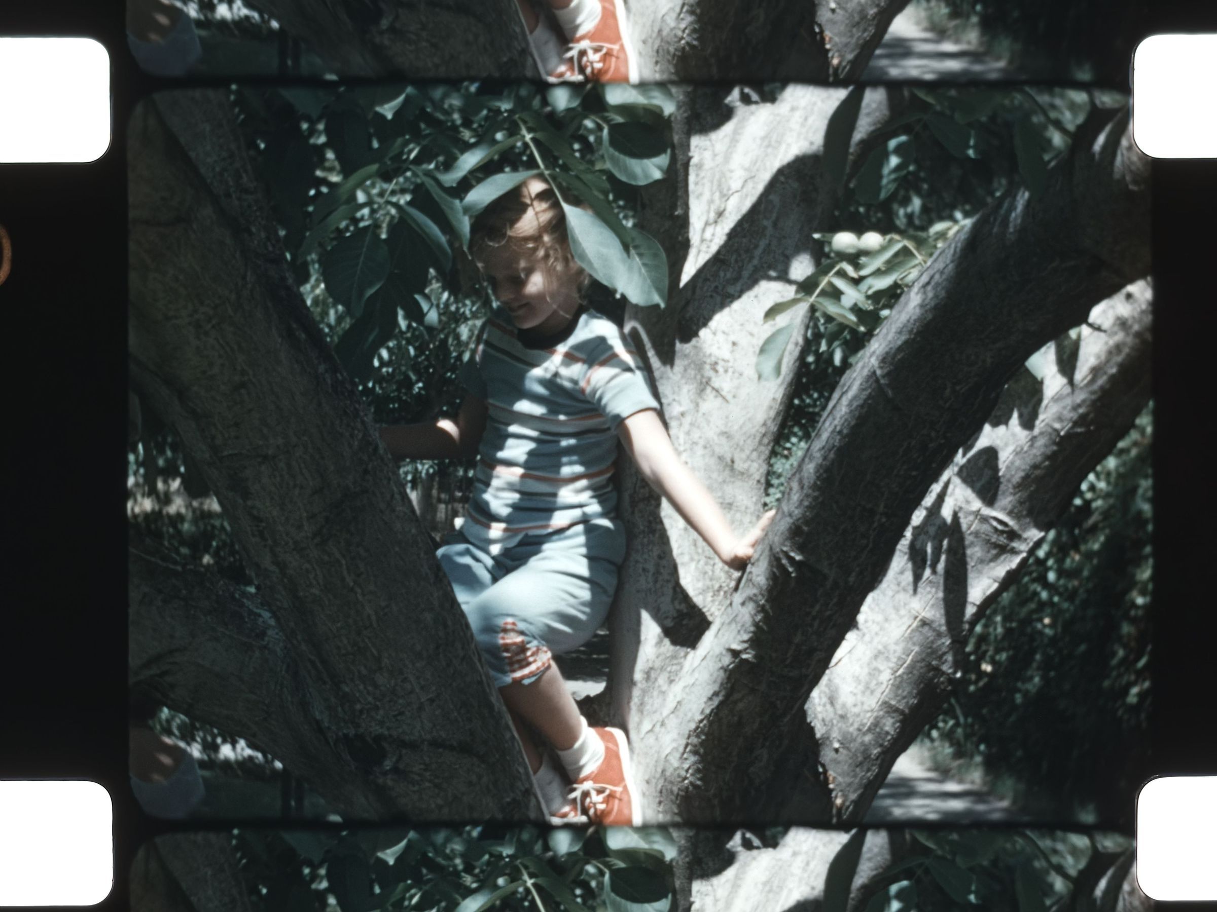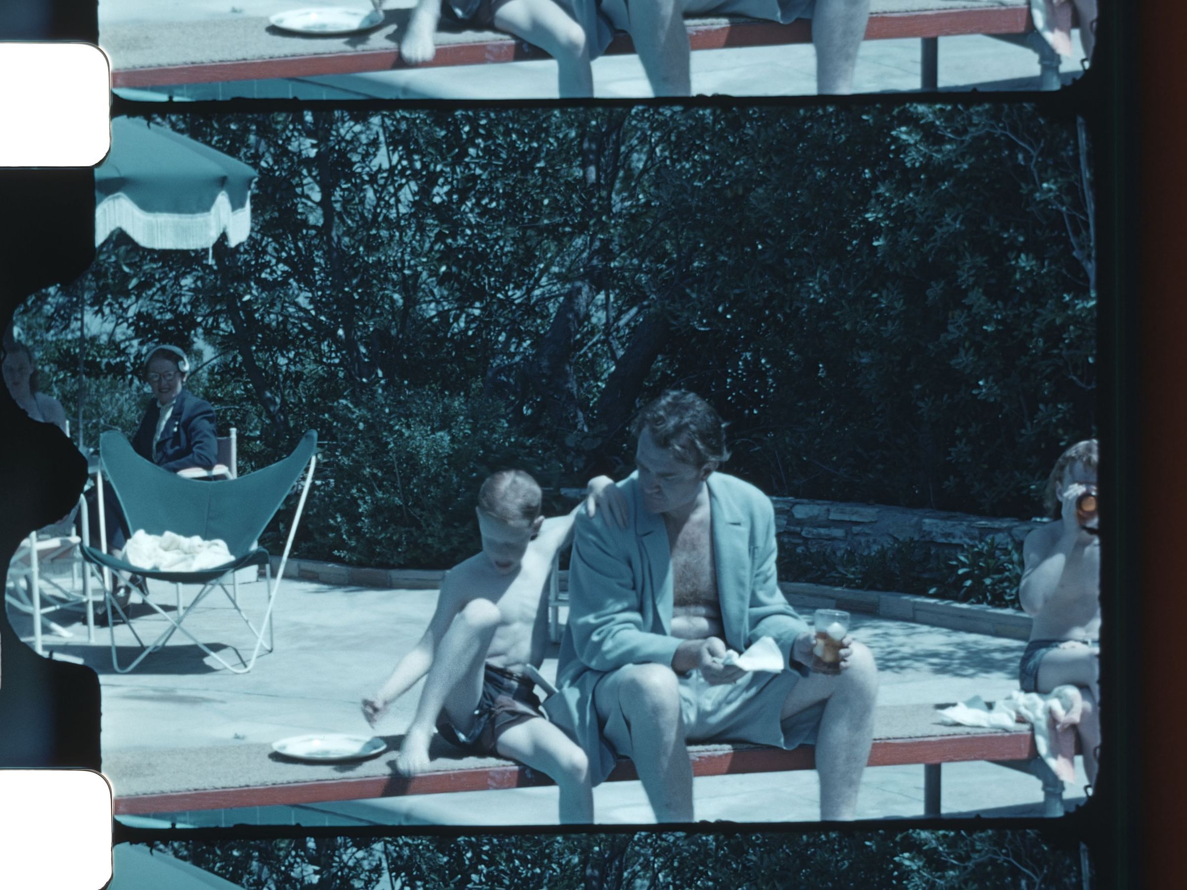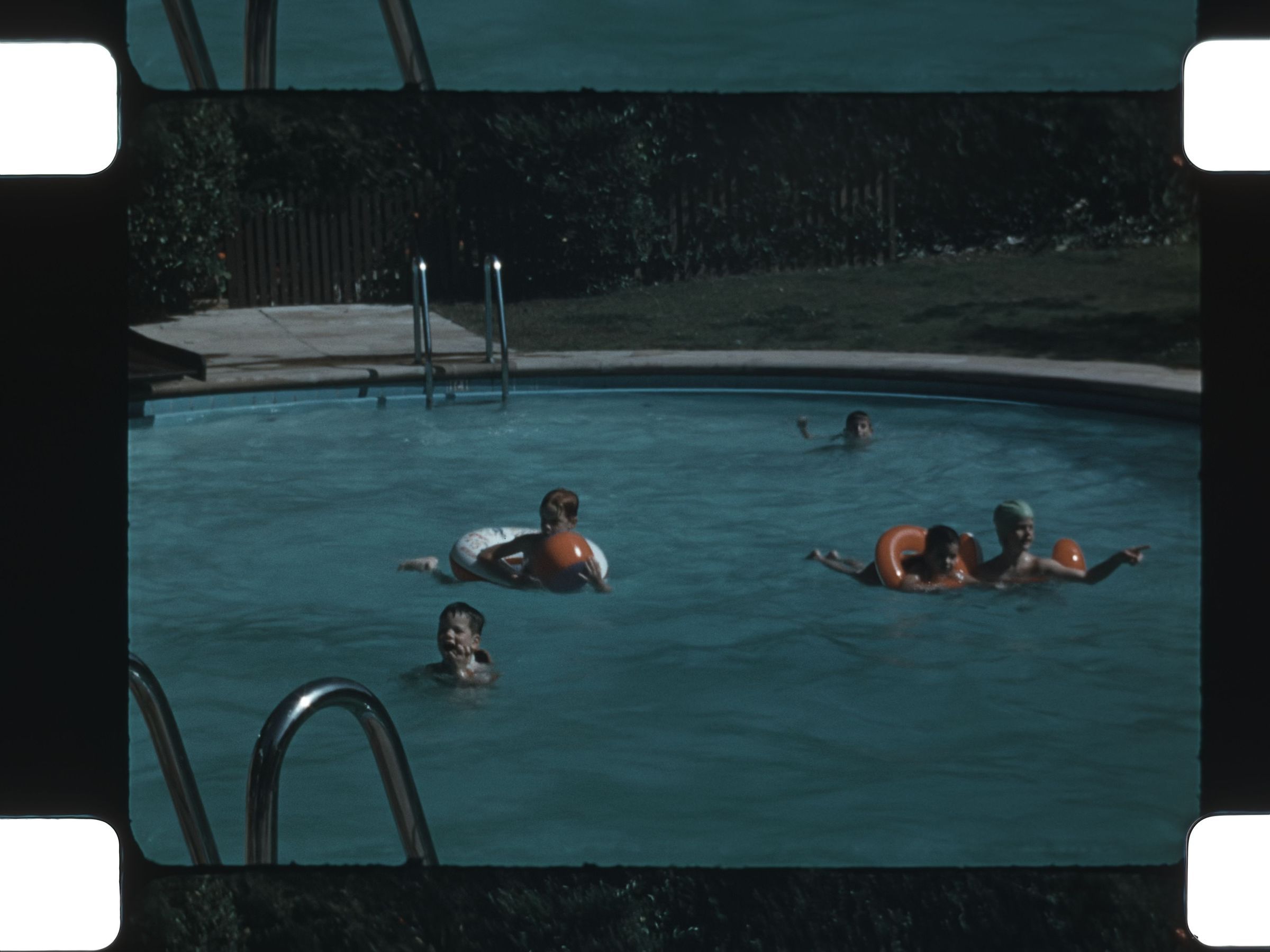 girl washing her mother's hair with a garden hose in the backyard while she smokes a cigarette