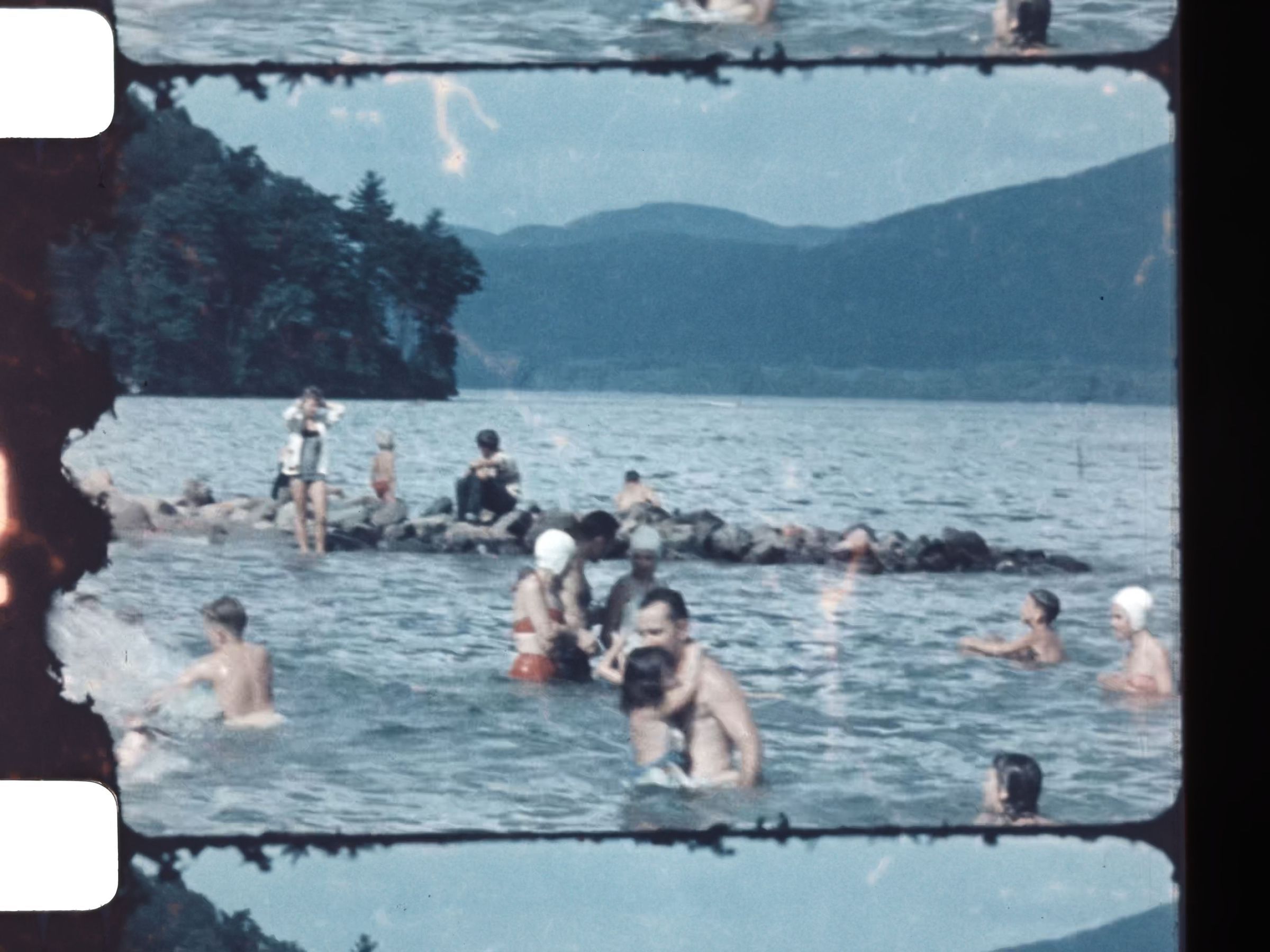 beachgoers relaxing and swimming