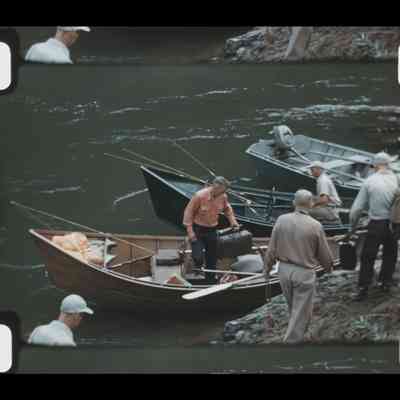 black and white footage of men boating and fishing on Rouge RiverMotion Picture Details