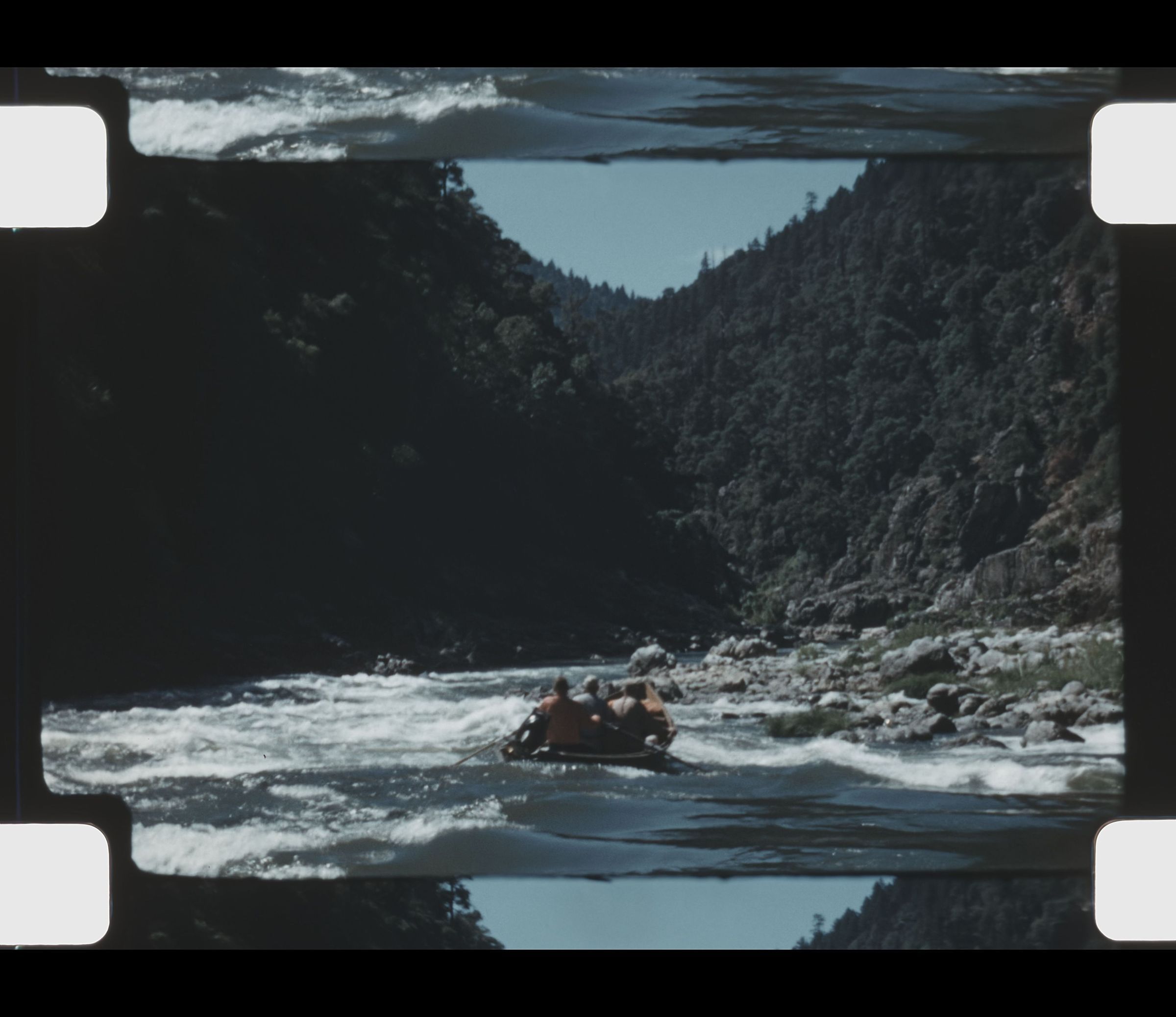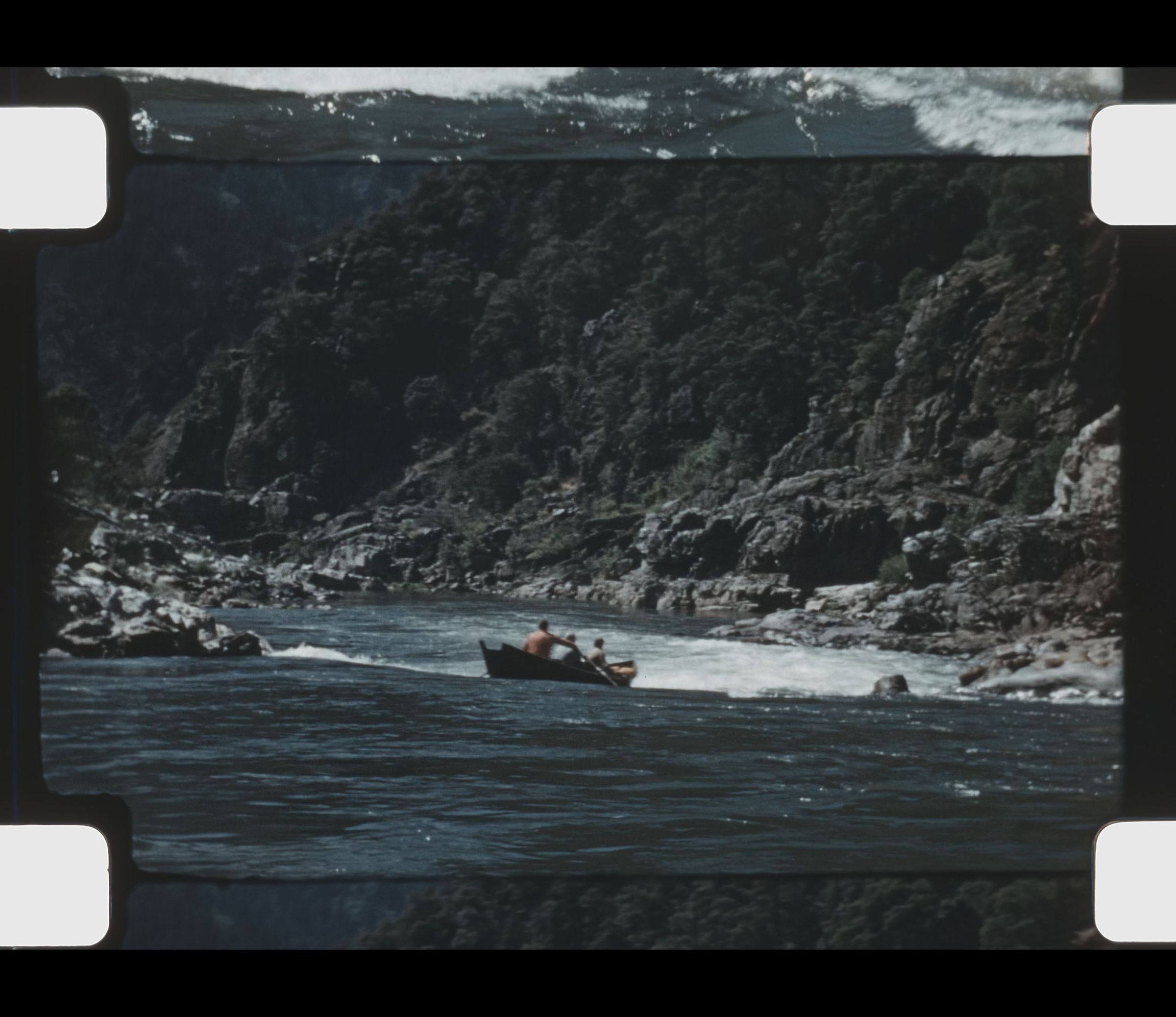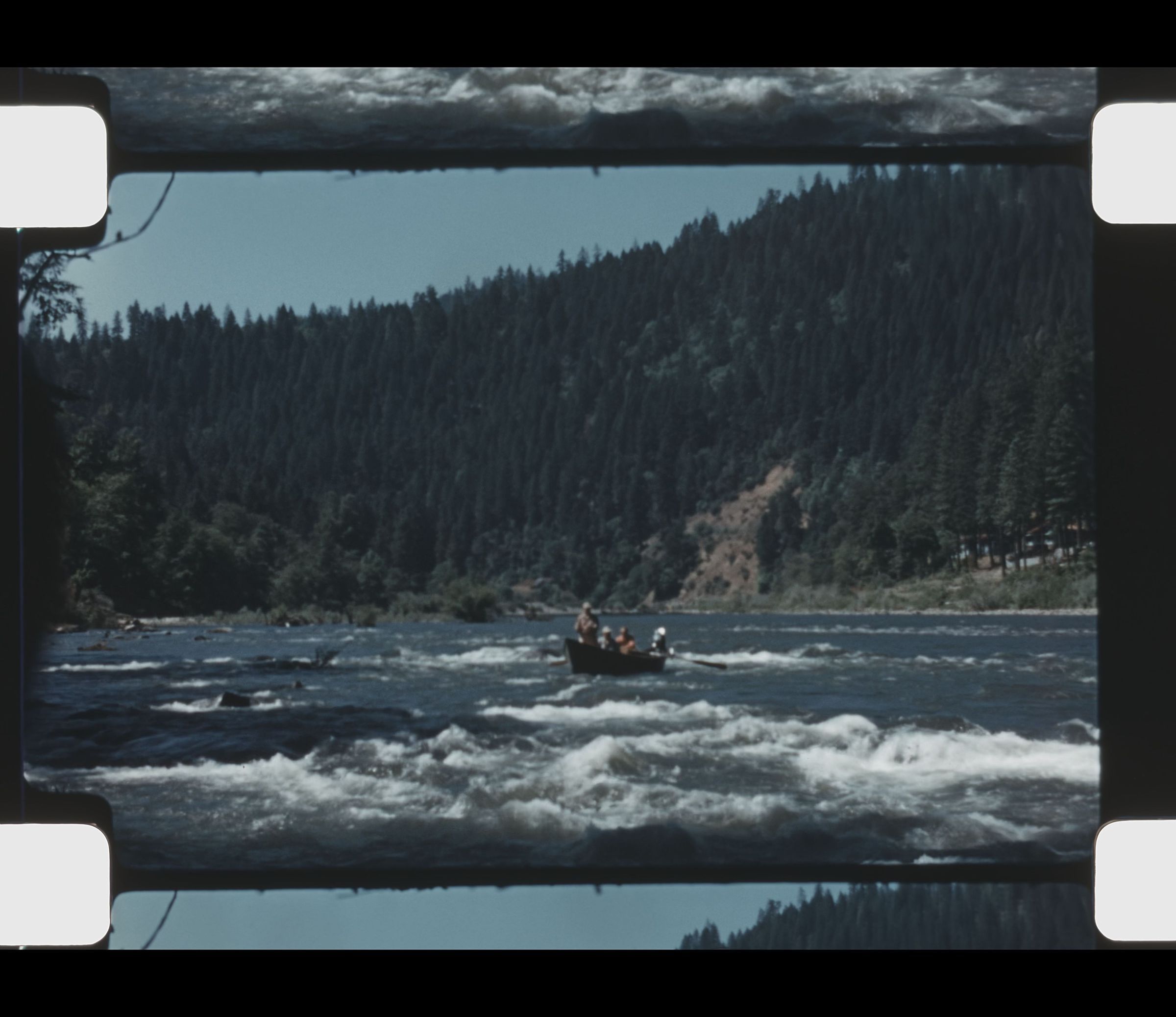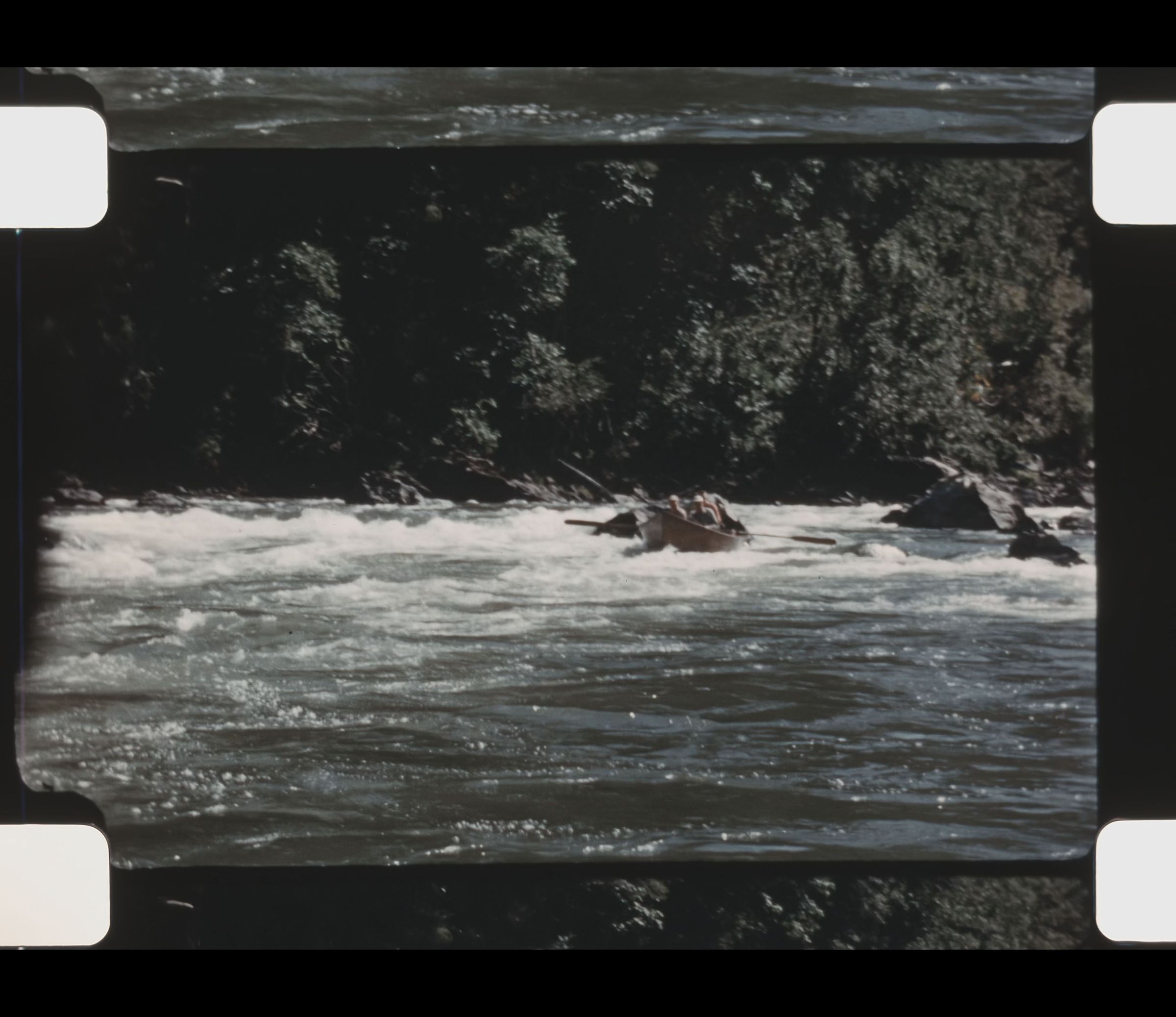 men boating through rapids on Rouge River