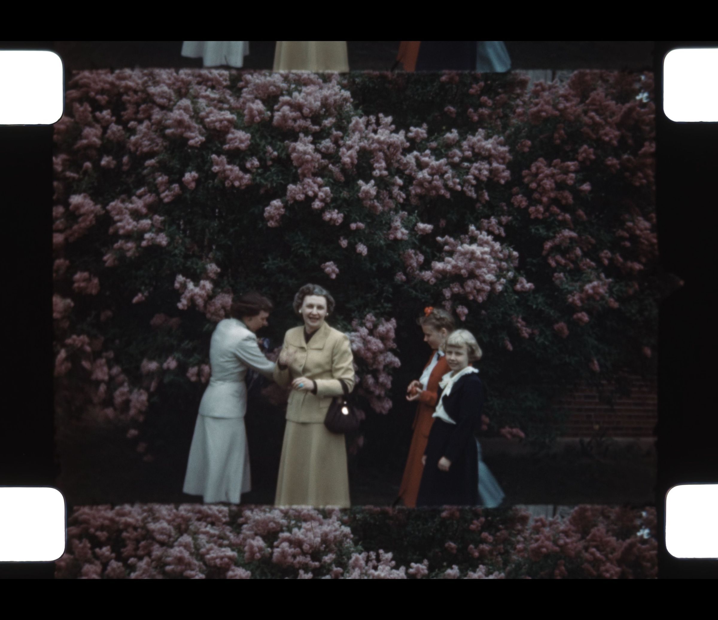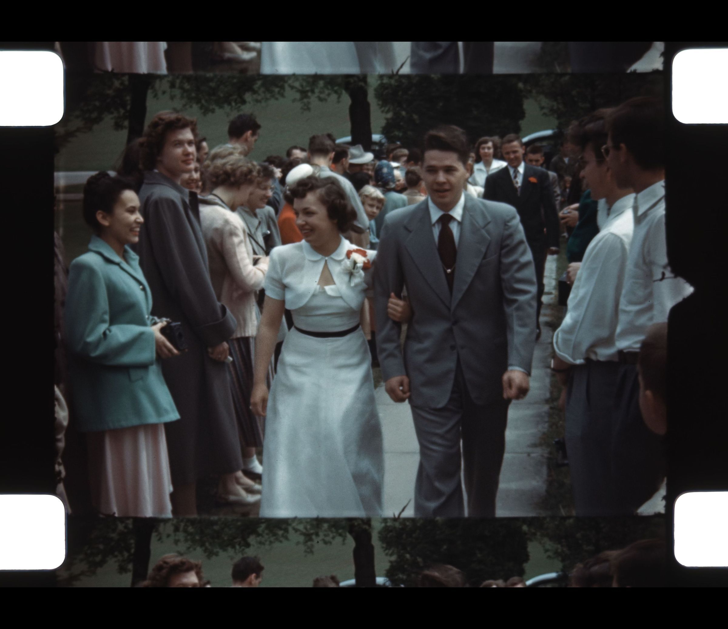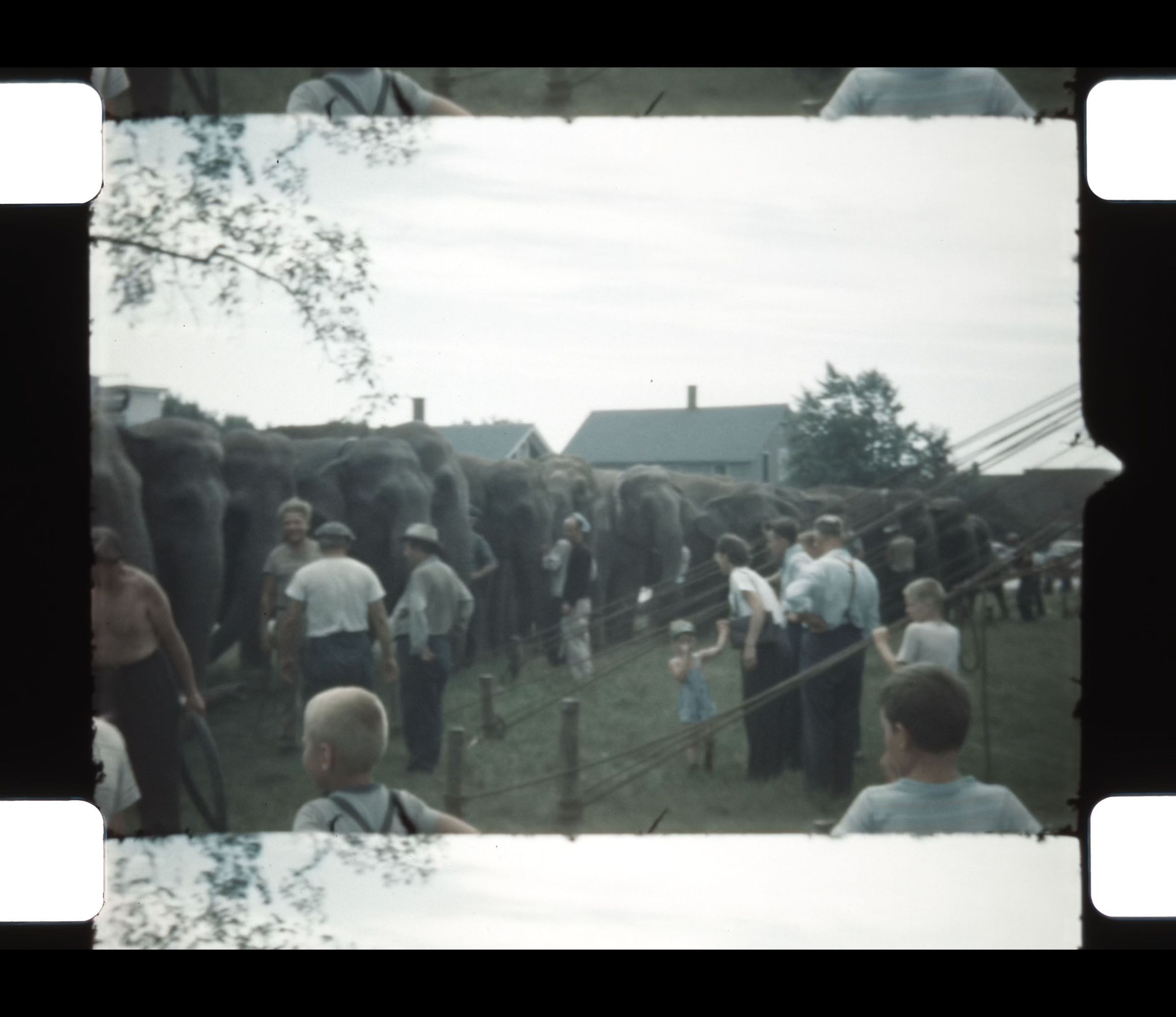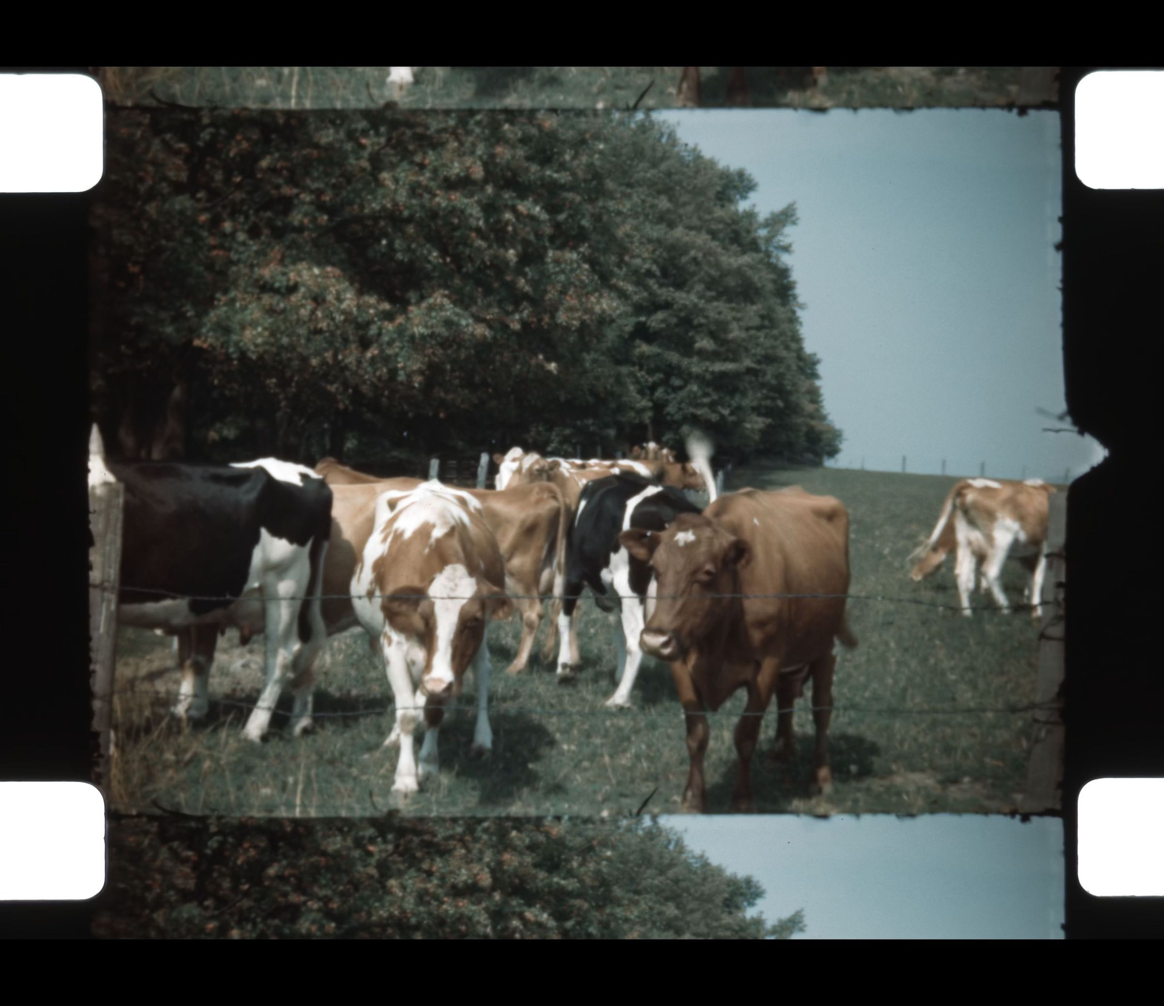 farmers driving tractors and shoveling corn stalks onto the back of a tractor