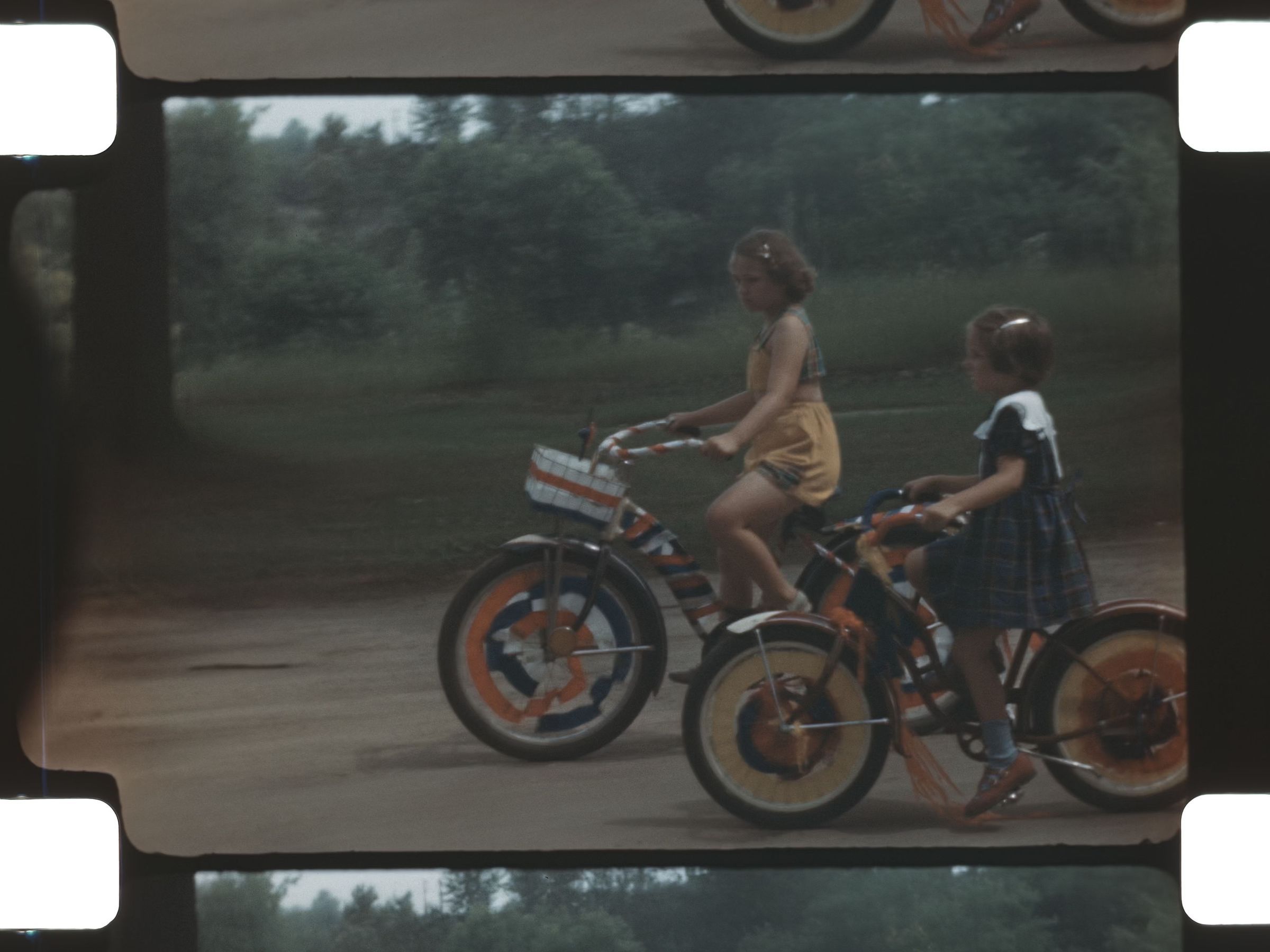 kids riding their bikes in a parade