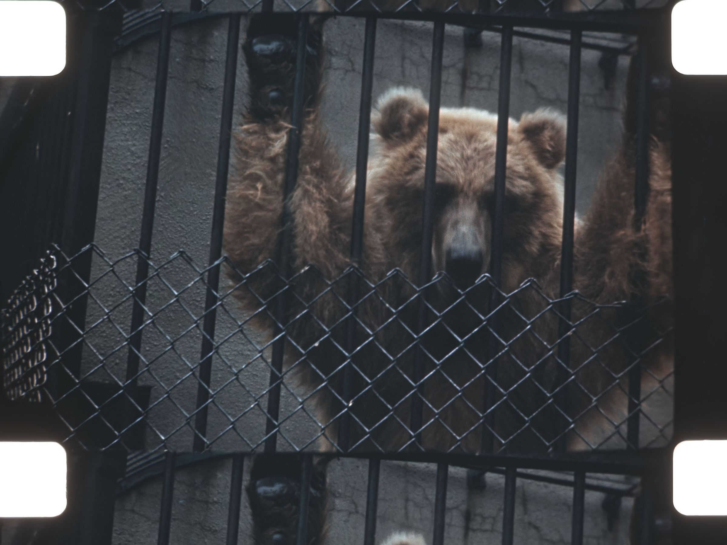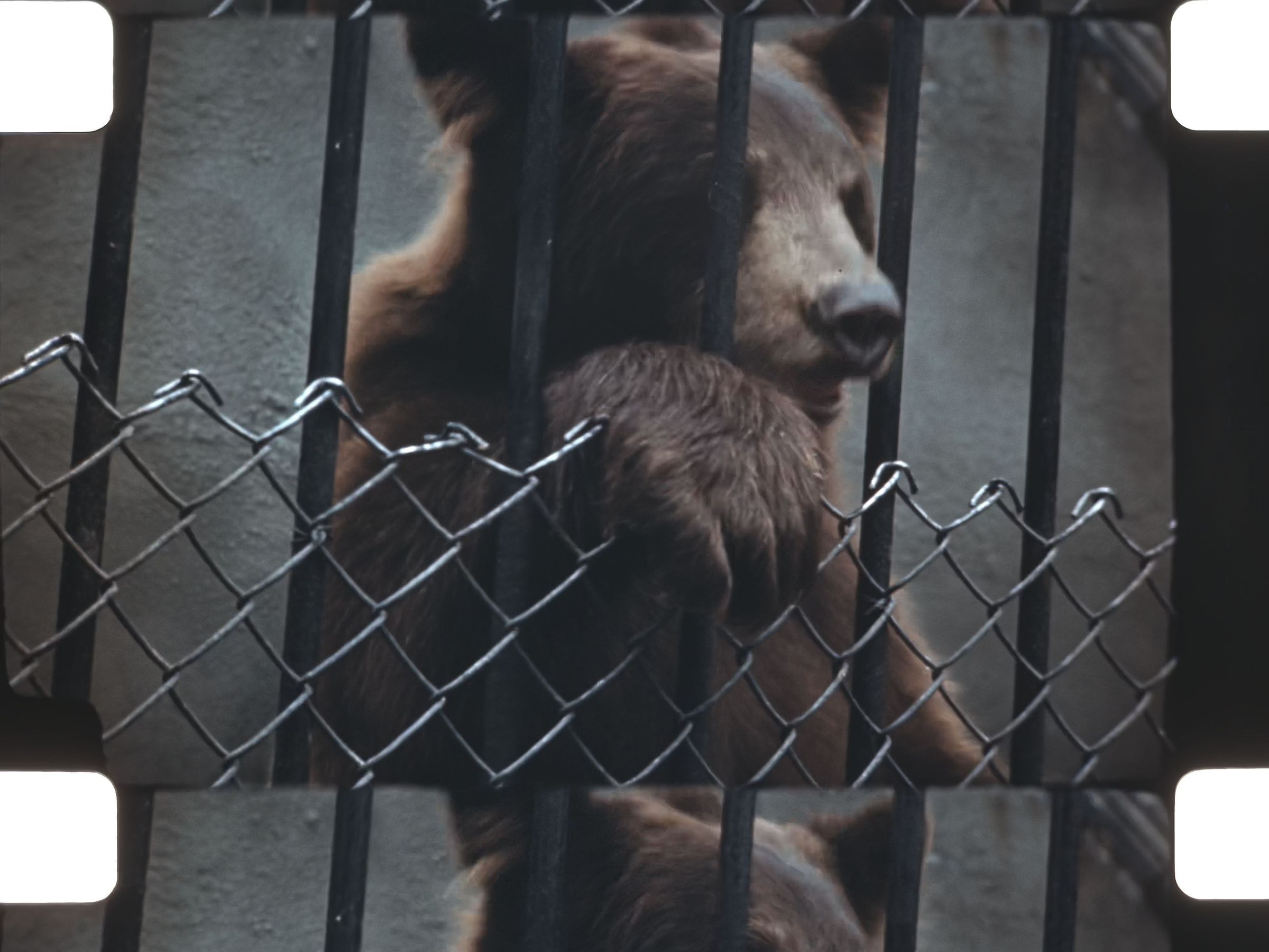 bears climbing on cages and standing up on back feet