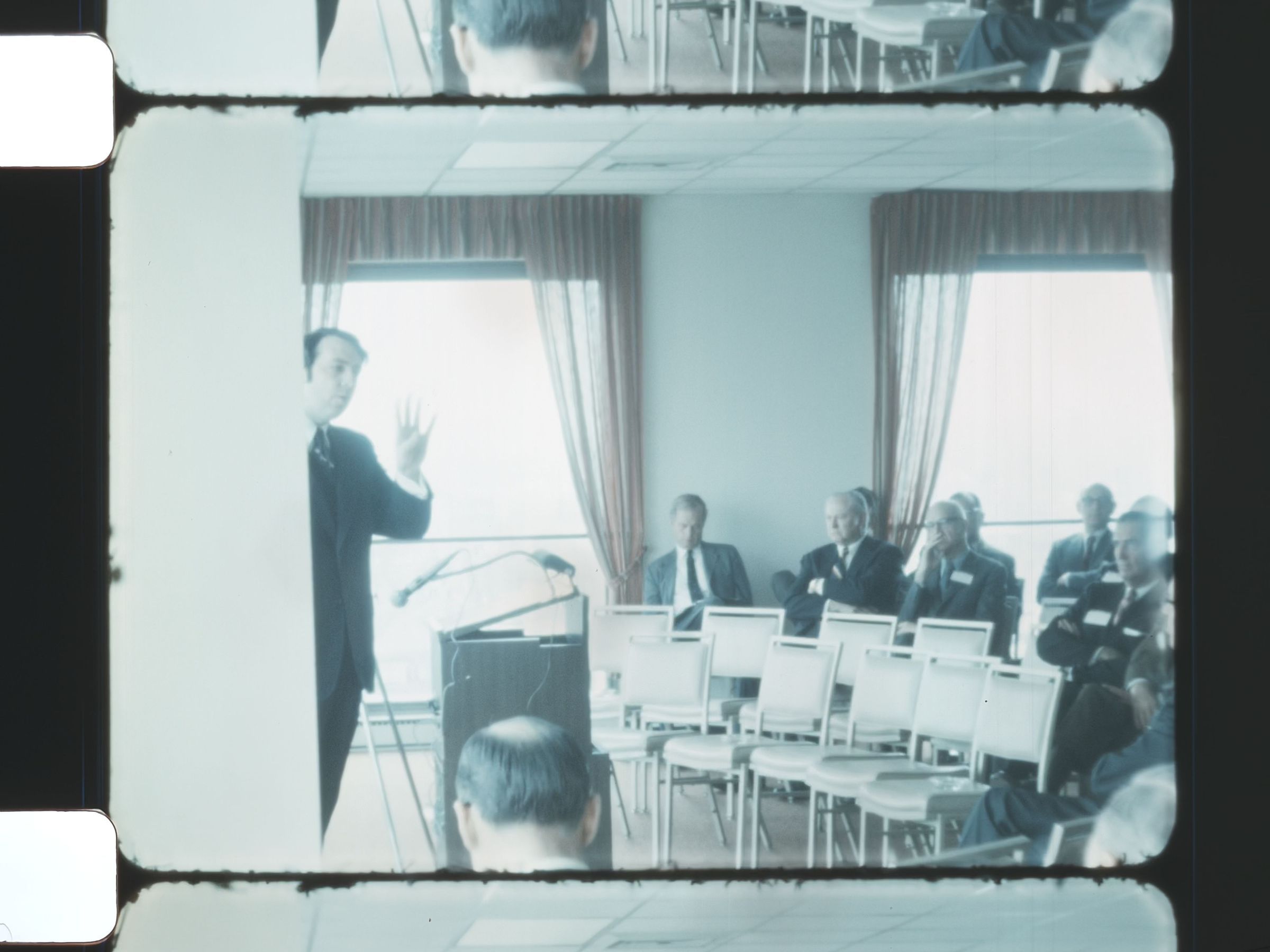 men gathered around a speaker in a large room a man speaking to a crowd men listening intently to a public speaker