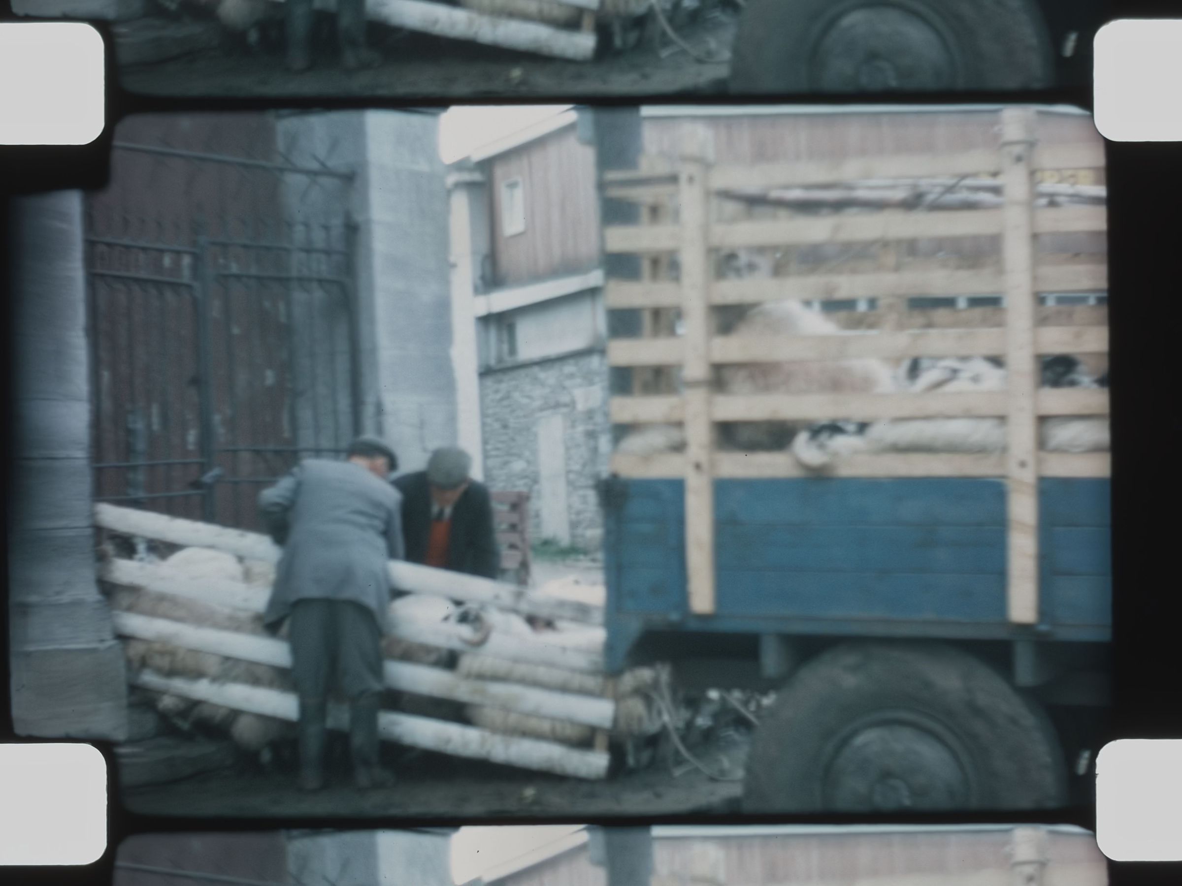 sheep being loaded through town