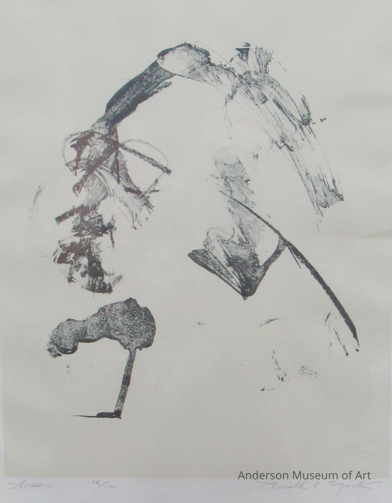 18/100 Abstracted portrait of a man with glasses and goatee in black on white paper. The man is facing the left with his head tilted up. Signed, numbered, and titled. Signed "Gerald E. Martin" in the lower right corner.Acquisition