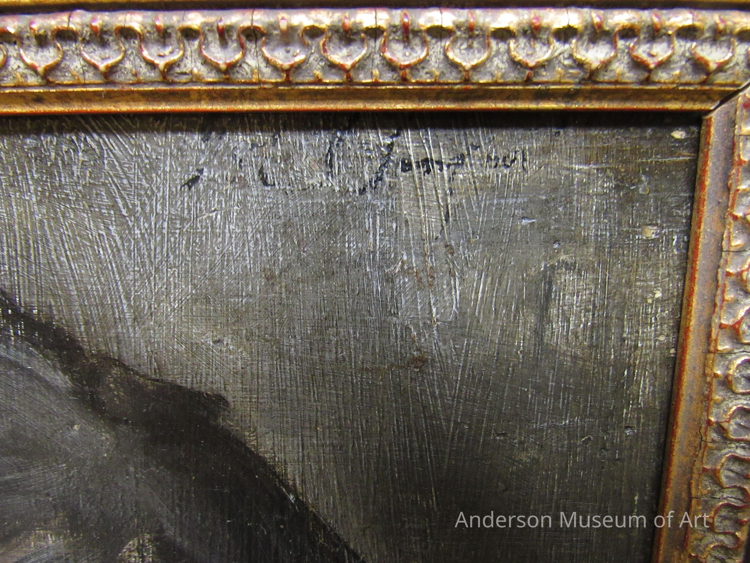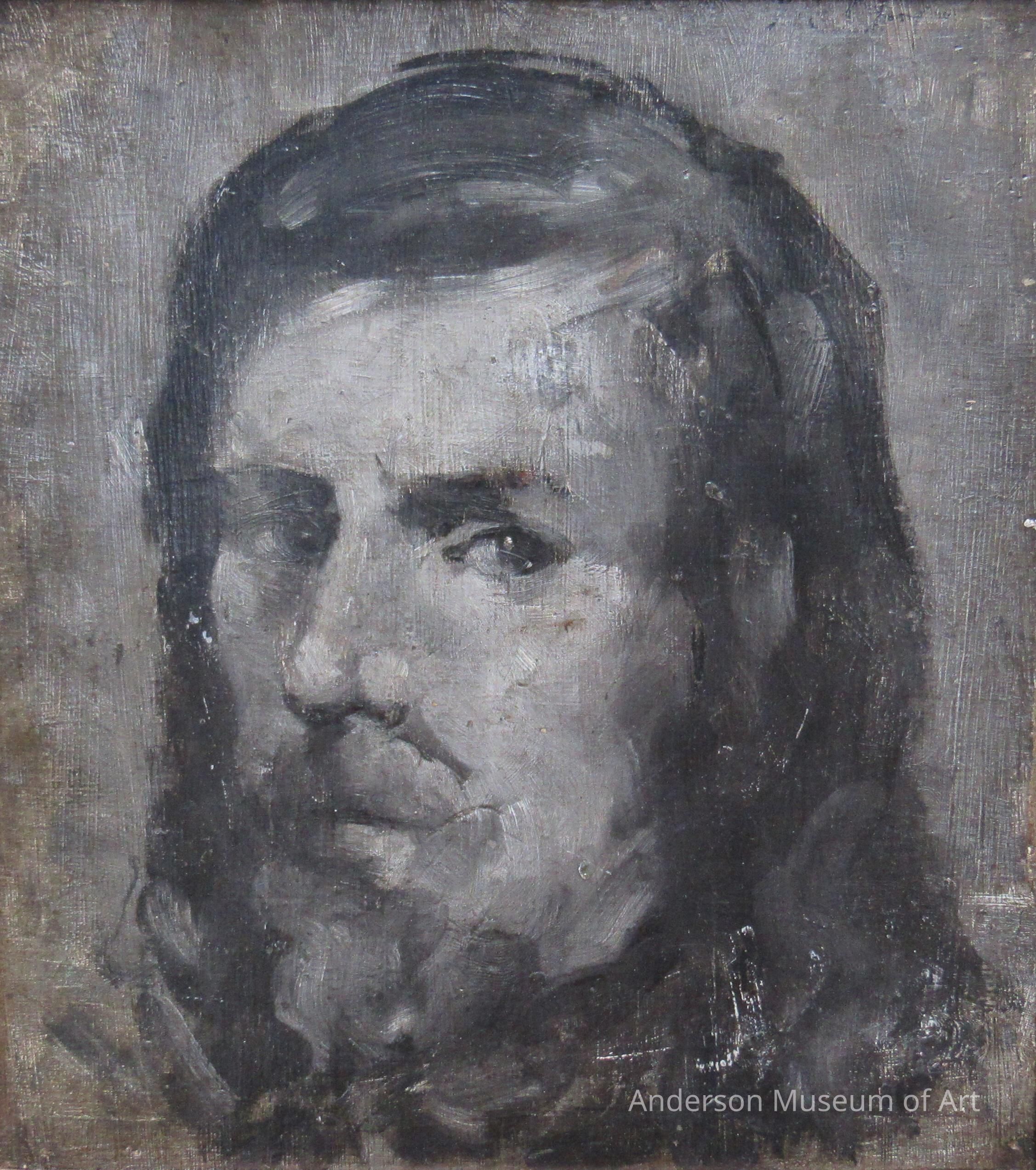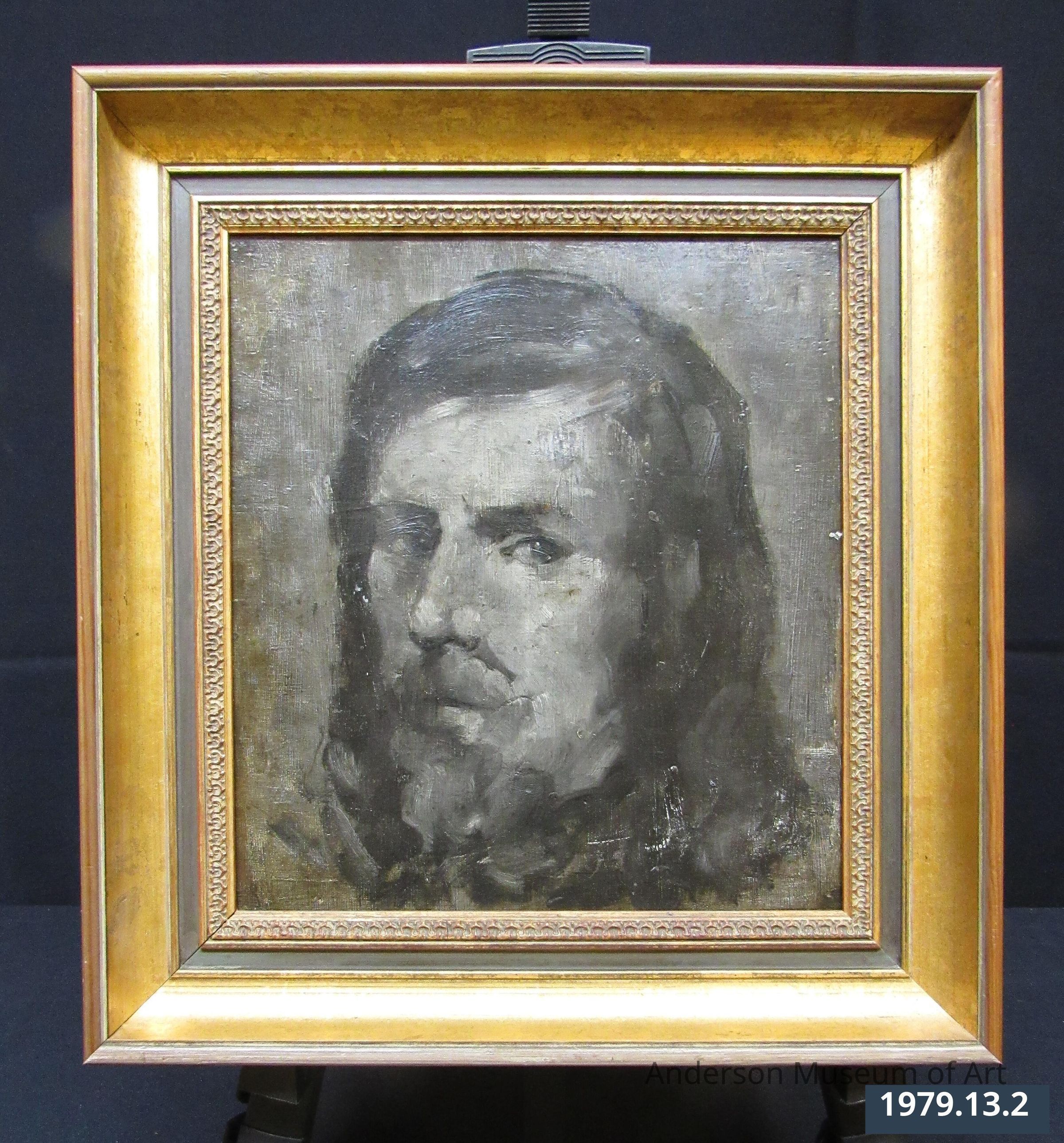 This painting is attributed to John Singer Sargent. It is a portrait of a man in three-quarters view. Shoulder length hair parted on the side. The portrait is made up of gray tones, and this work is signed in the upper right corner.Type of Painting