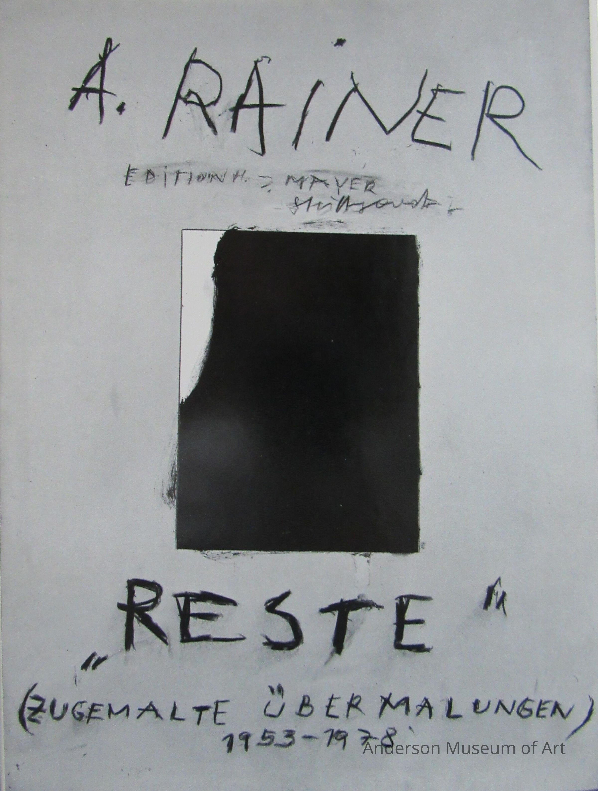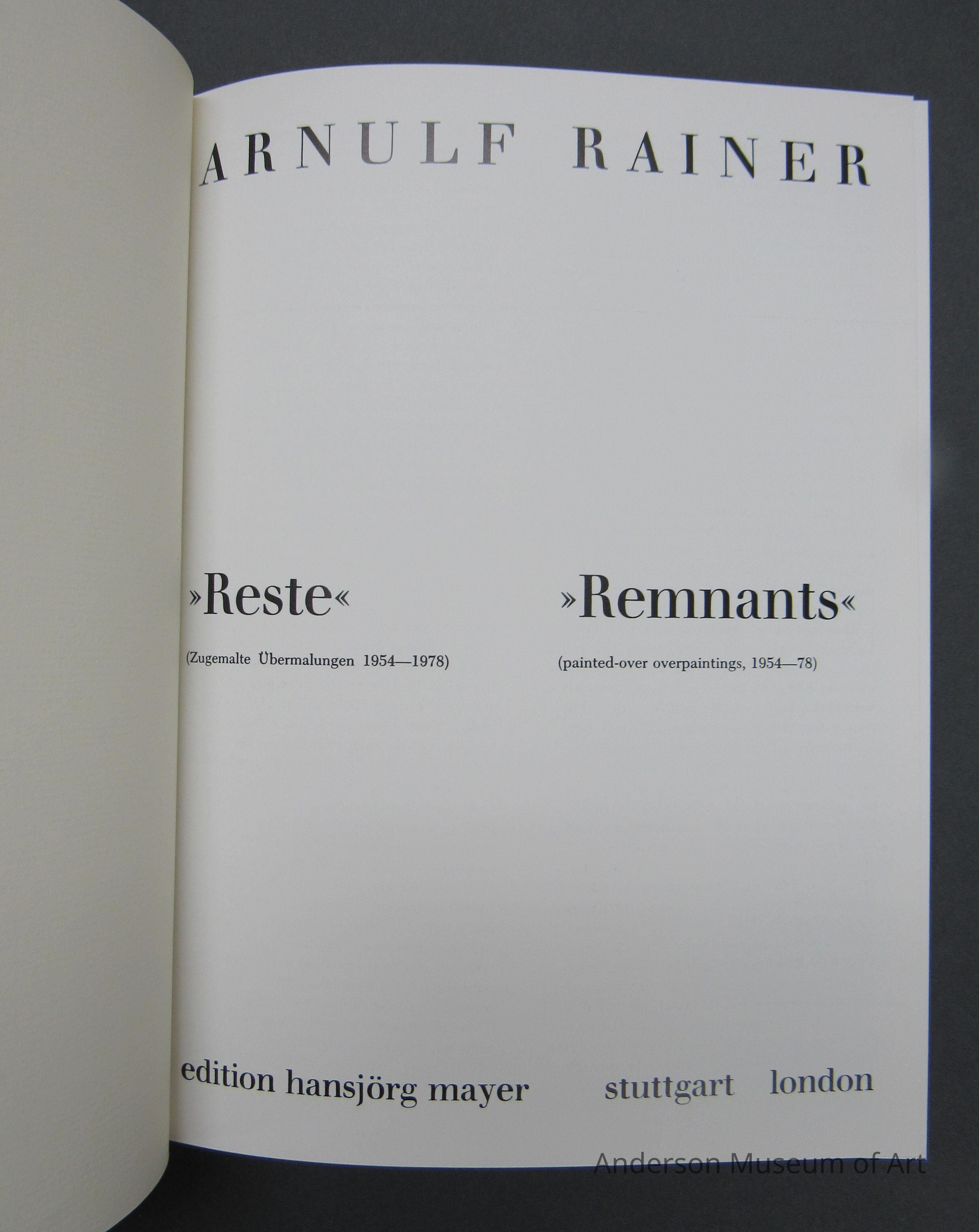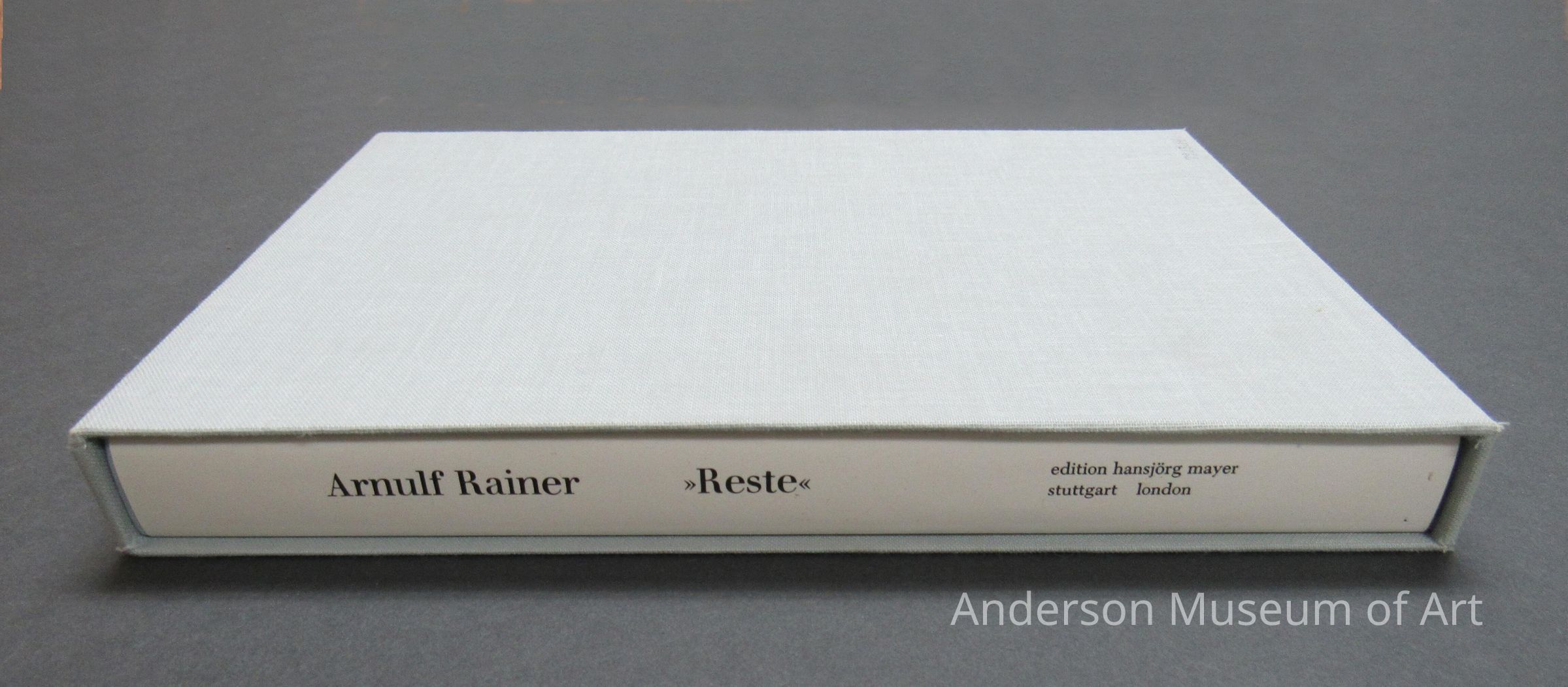 256 page book. Hardback edition including the slipcase with an original etching by the artist. It is signed and numbered 45/250. Print is wrapped in a pink tissue paper. The book is from an edition of 2000 created in 1978 of which 1000 cloth bound in slipcase with an original etching by Arnulf. 4 etchings total with edition of 250 each. Edition hansjorg Mayer / Stuttgart / London. Published autumn 1978. Slipcase is a light grey/blue.Collection