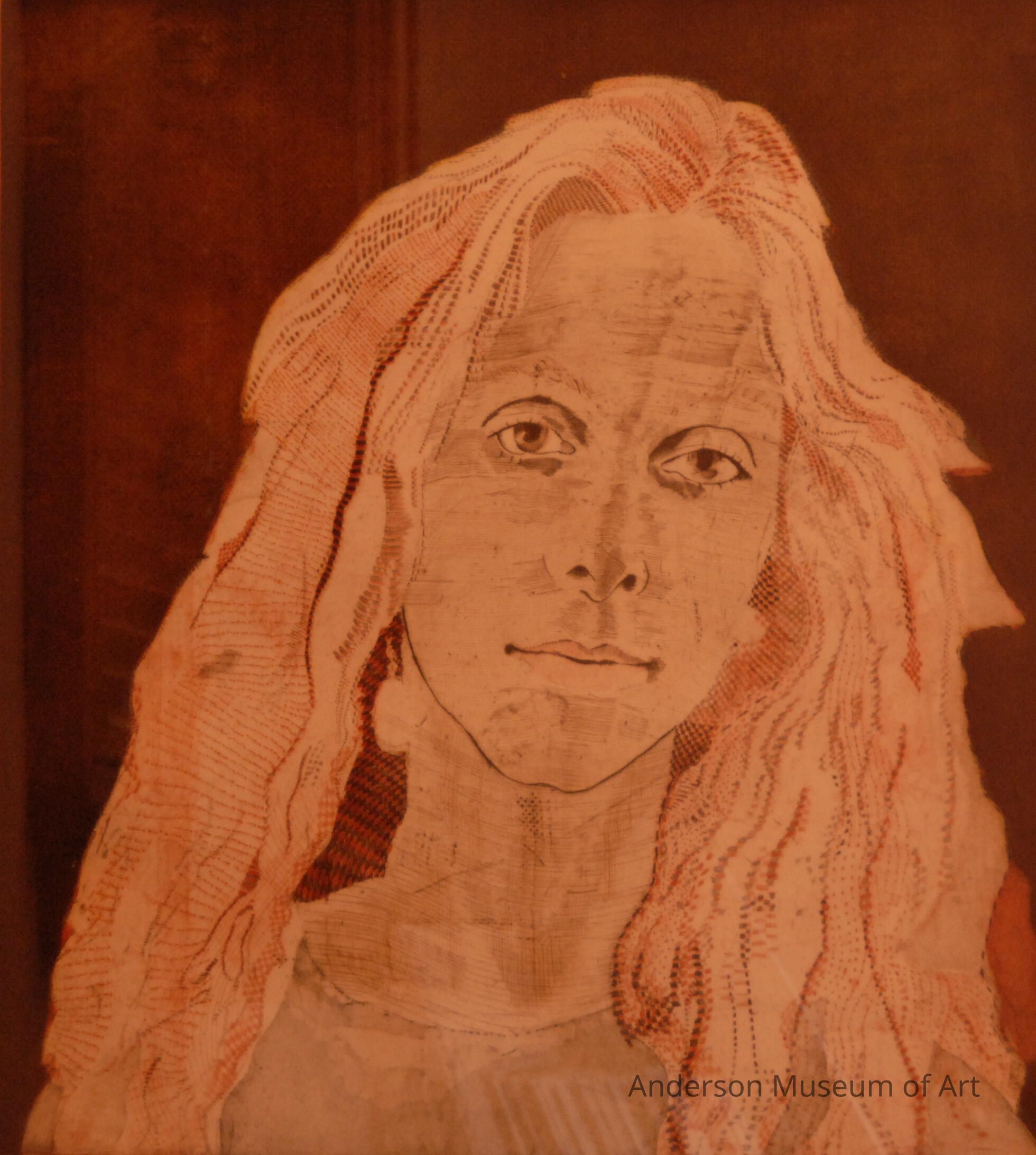 work is signed in the lower right corner "Tomas R. Lasansky" and is titled in the lower-left corner, "Lisa WS." The background is in brown tones and appears to be very "active." Plate marks are apparent around the edges of the picture plane.Collection