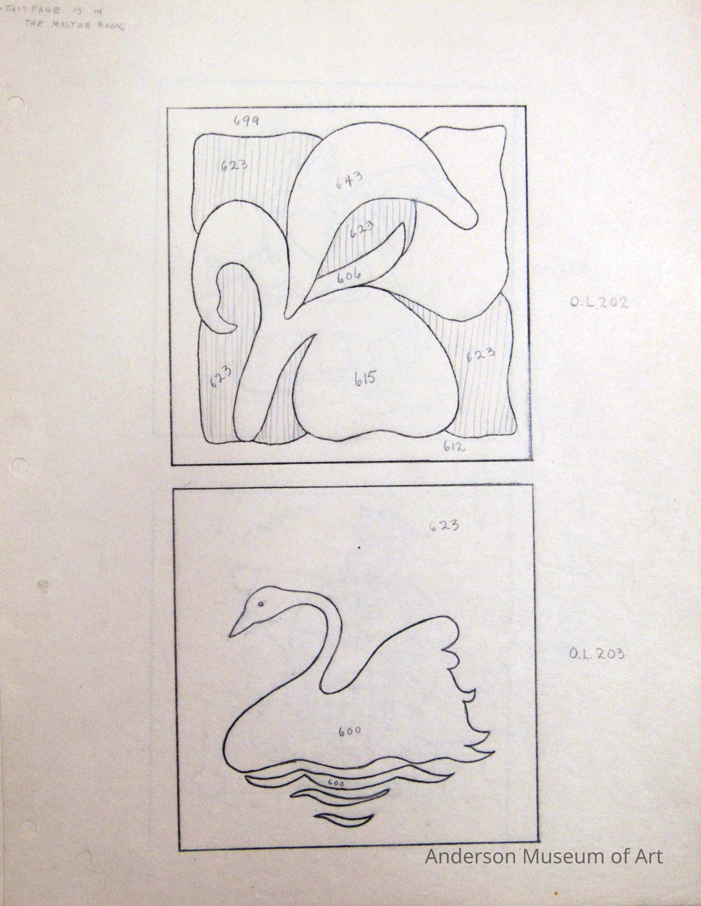 1. Flower (O.L. 202) and Swan (O.L. 203) (Two holes along left edge)