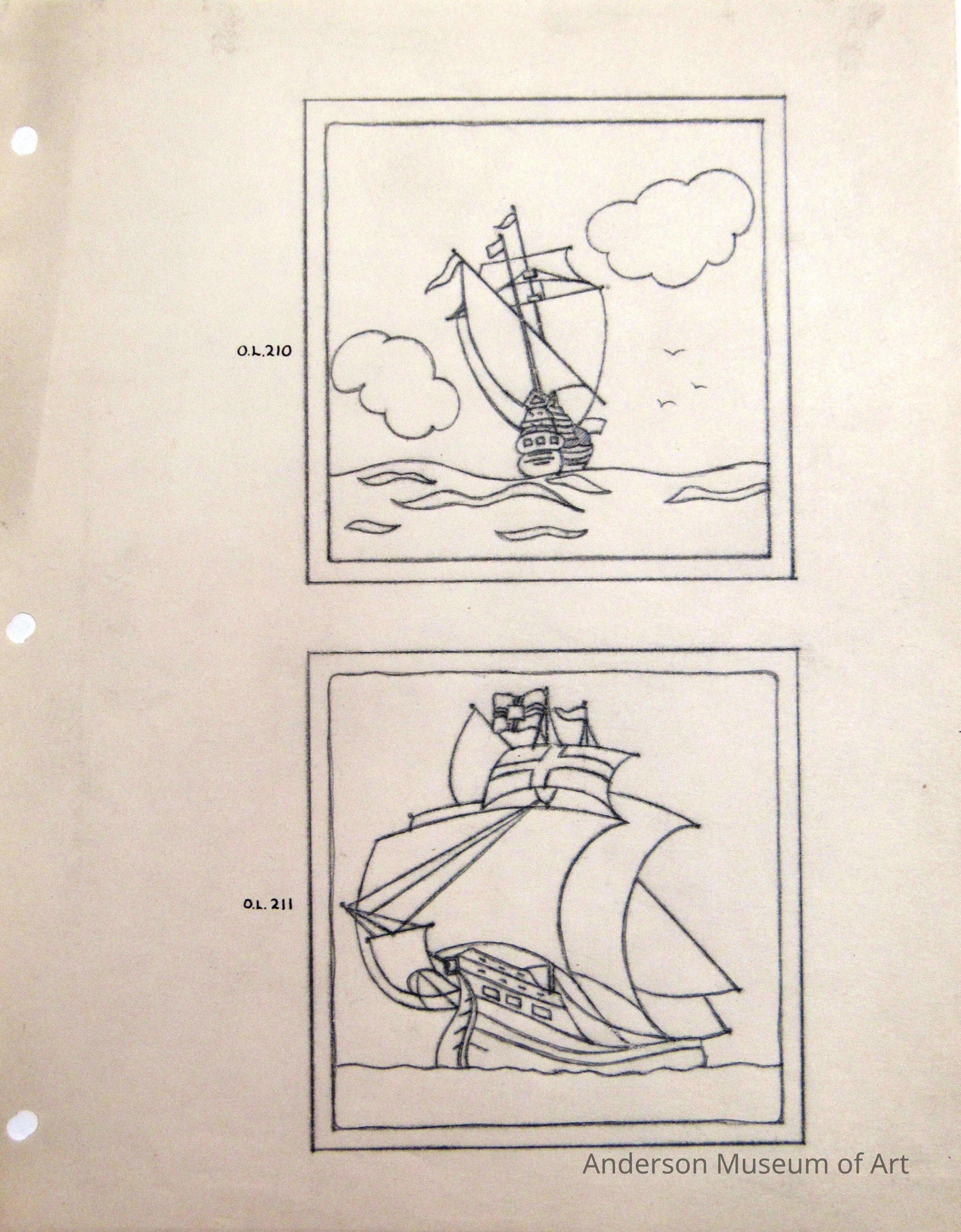 13. Ships (in ink, O.L. 210 and O.L. 211)Type of Drawing