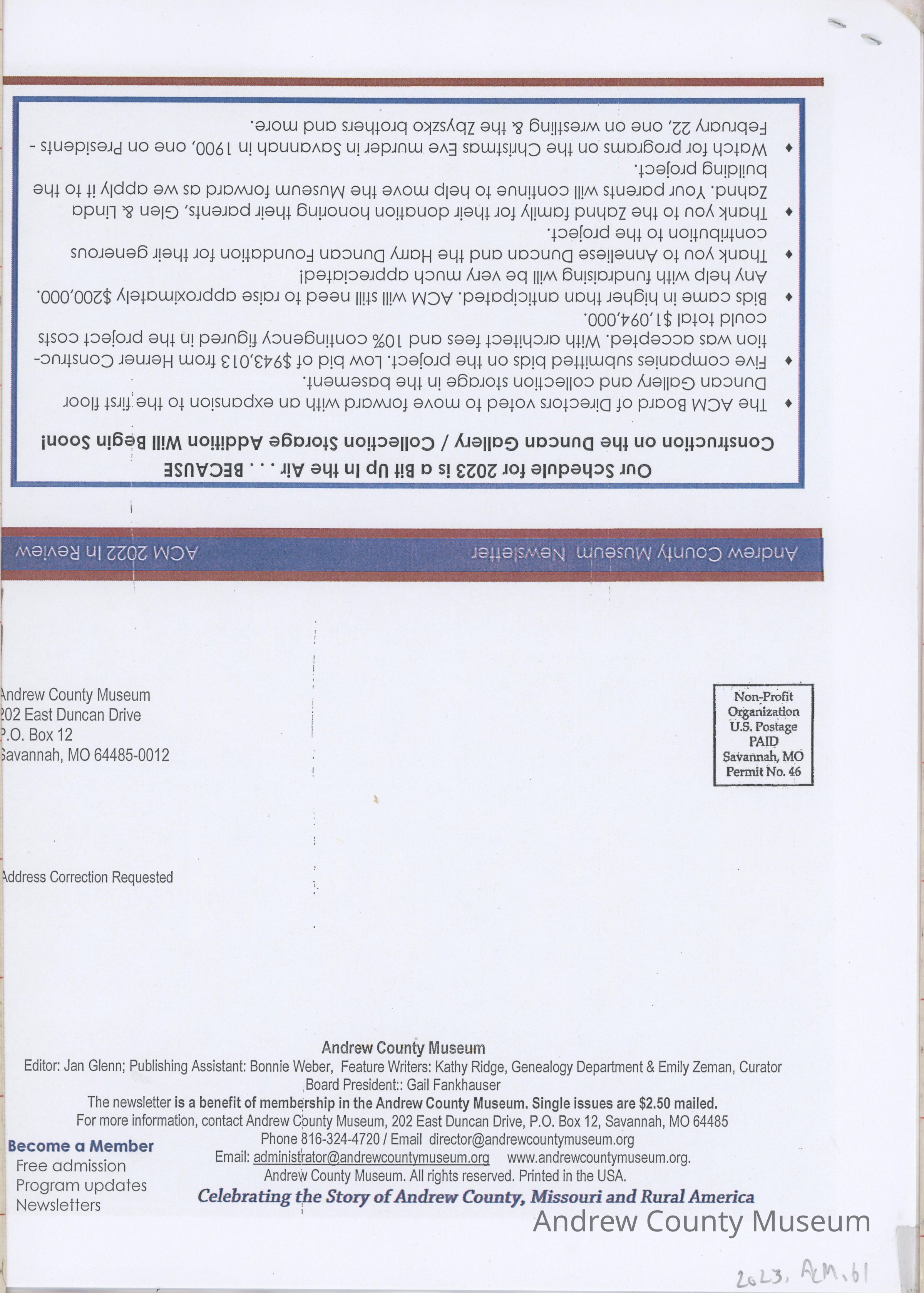 Andrew County Museum ACM Recap 2022 Happy New Year 2023!