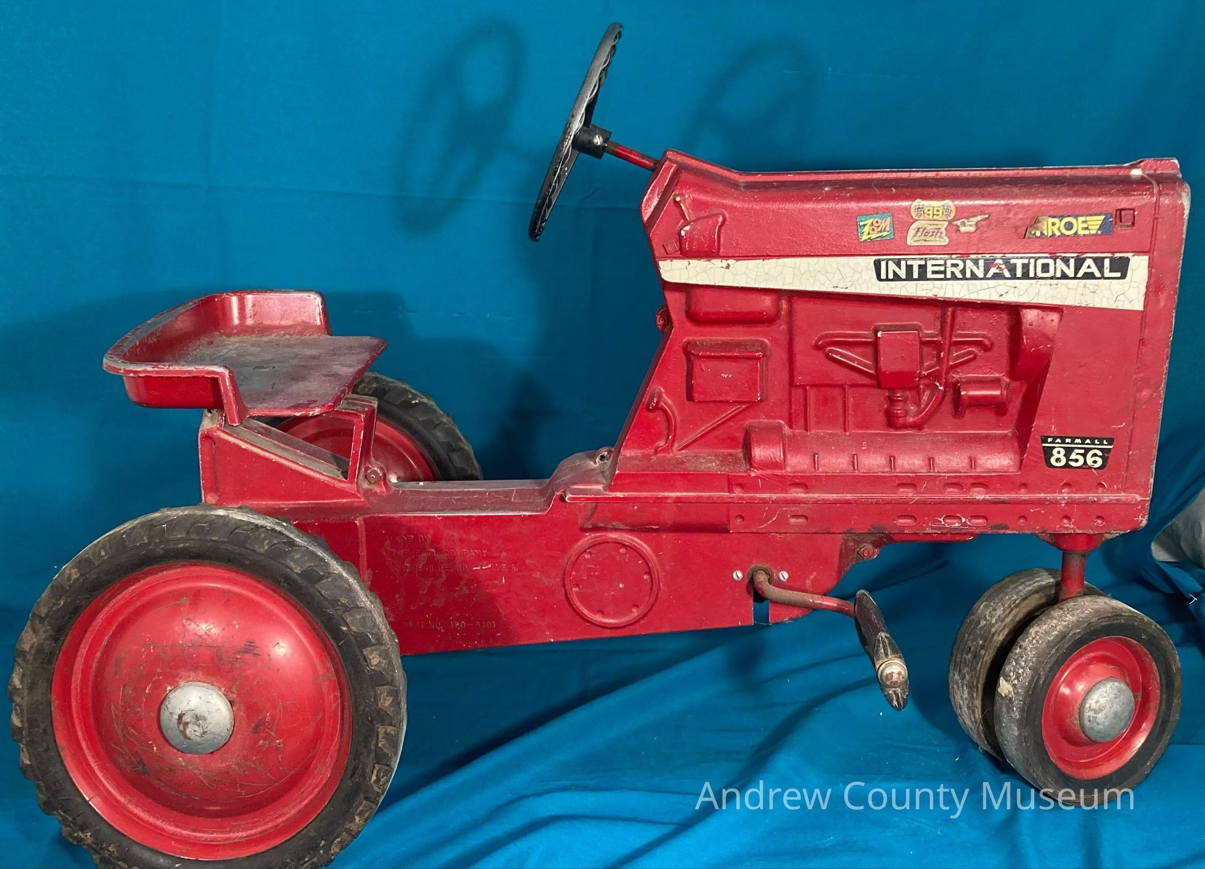 On the steering wheel, front of tractor and the back of the seat and on the front of the hood.Transcription