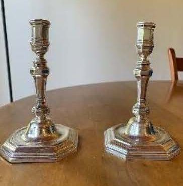 Pair of French Provincial or Belgian Silver Candlesticks