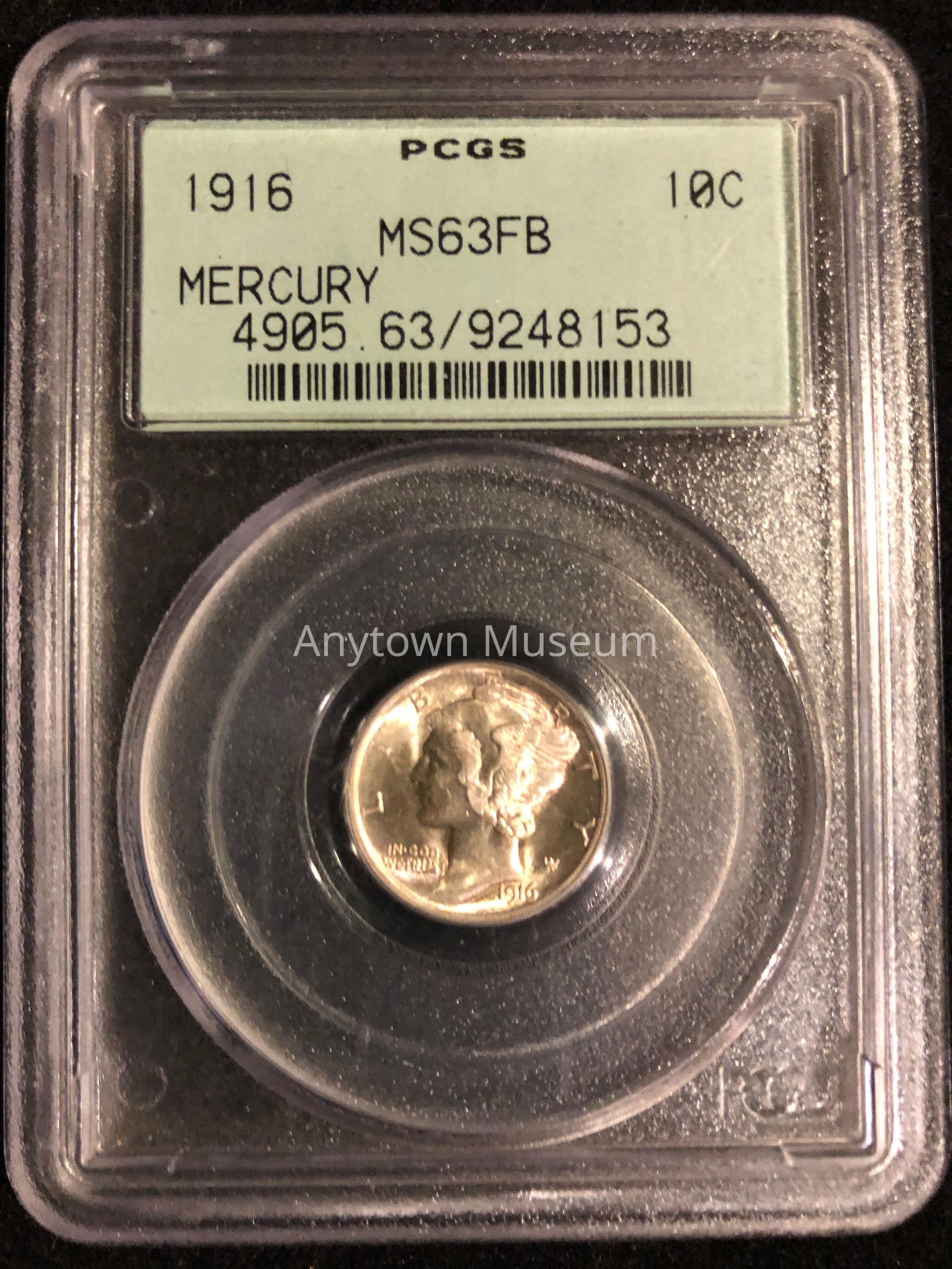 Profile head of young Liberty wearing a winged Phrygian cap, with the word, LIBERTY around the top; "In God We Trust" below the chin and 1916 below the neck. Confused with the Roman god Mercury, hence most commonly referred to as a "Mercury Dime."
