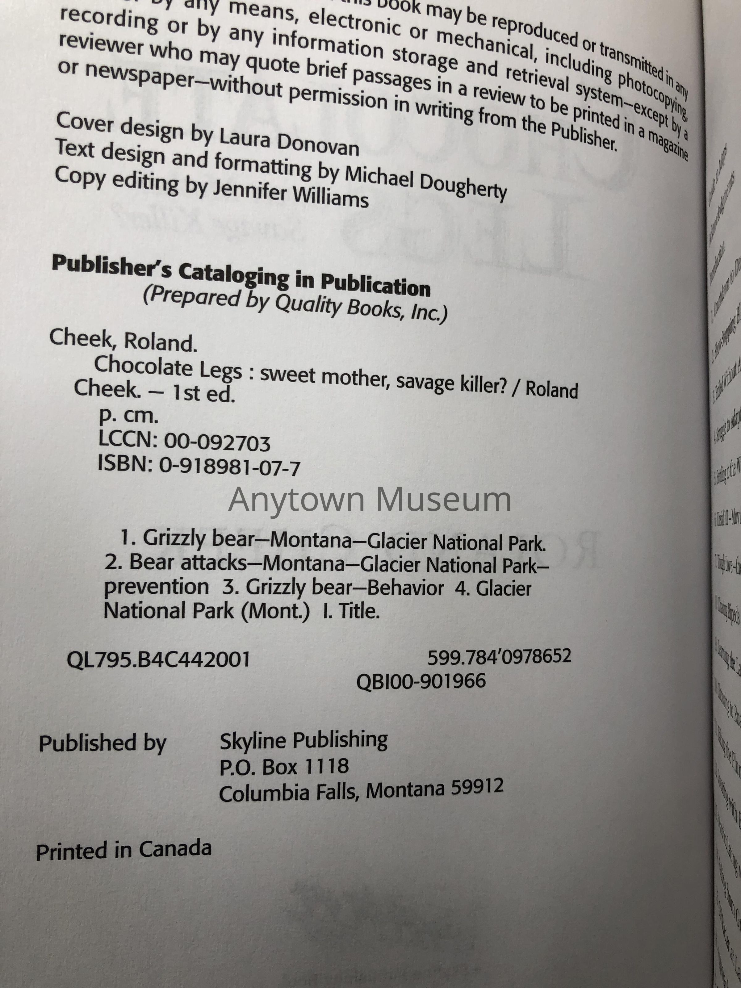 Chocolate Legs is an investigative journey into the life and death of one of the world’s most fascinating creatures by a long-time journalist who has lived with great bears. But it’s a story going far beyond the life of one bear in one National Park. It’s a story of humans who care about our land’s wild animals, about officials charged with the care of that land and those animals; a story of the extraordinary efforts they sometimes expend to ensure all wild creatures a safe and natural existence while still affording opportunity for the general public they ultimately serve.Collection