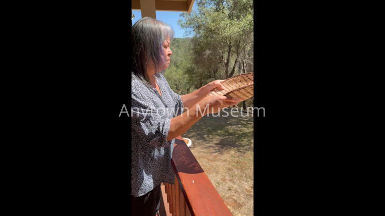 A brief video recording of Jennifer Bates demonstrating use of a winnowing basket to remove the husks from acorns as part of the process of cooking acorn.Acquisition
