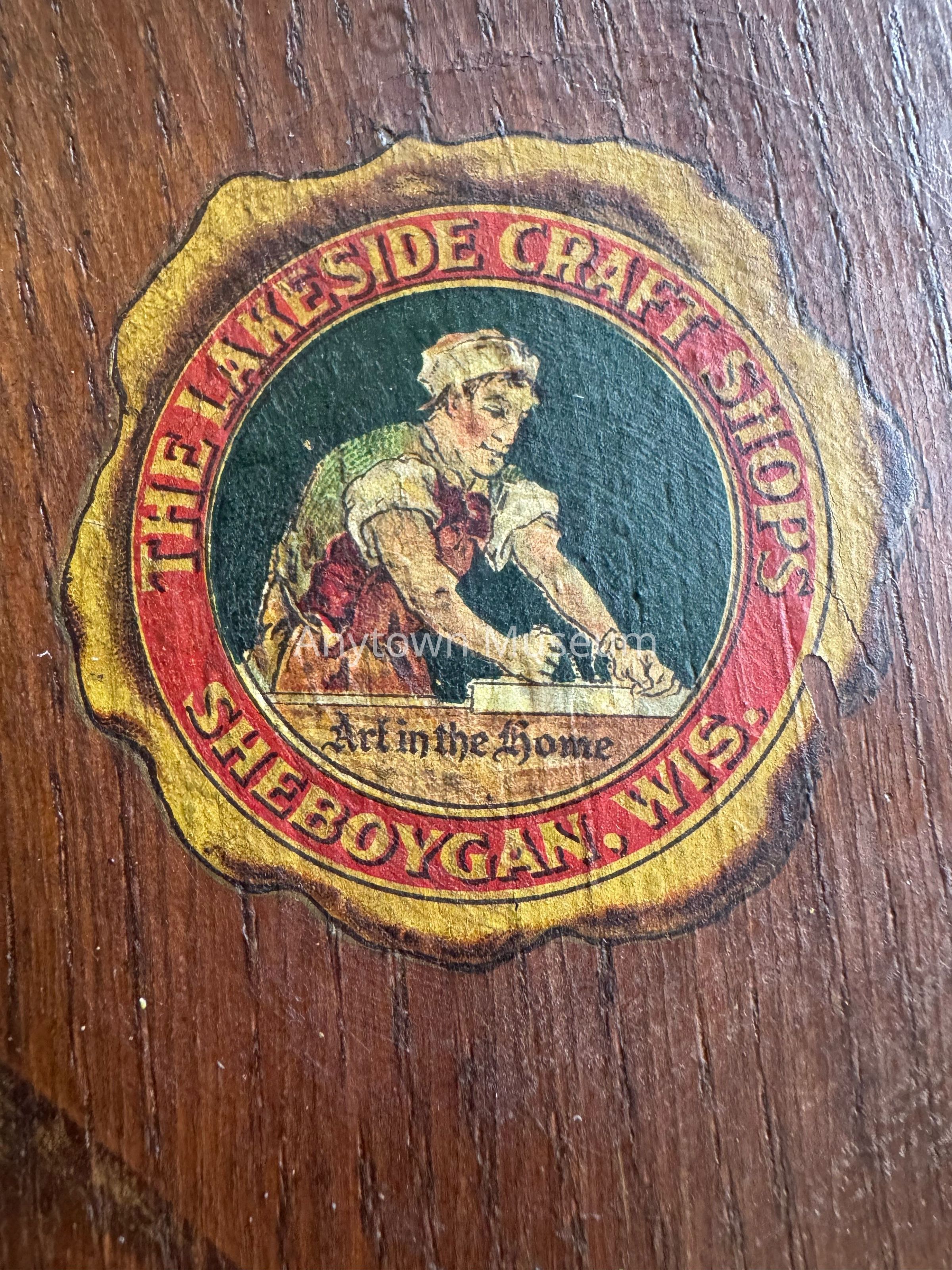"The Lakeside Craft Shops of Sheboygan, Wisconsin was founded by Fred Dennett in 1912 when he was 61 years of age. Dennett had already made his fortune as founder of the Wisconsin Chair Company, and he held investments in many other enterprises. The Company's motto was "Art in the Home." The Lakeside Craft Shops made home furnishings in the Arts and Crafts style, including fern dishes, bracket hanging baskets, book racks, cellarettes, card tables, waste baskets, stools, jardiniere stands, window boxes, smokers stands, serving trays, and umbrella stands – in oak and mahogany." - from Peter A. Copeland's, "The Lakeside Craft Shops: A Brief History and 1912 Catalogue".Address