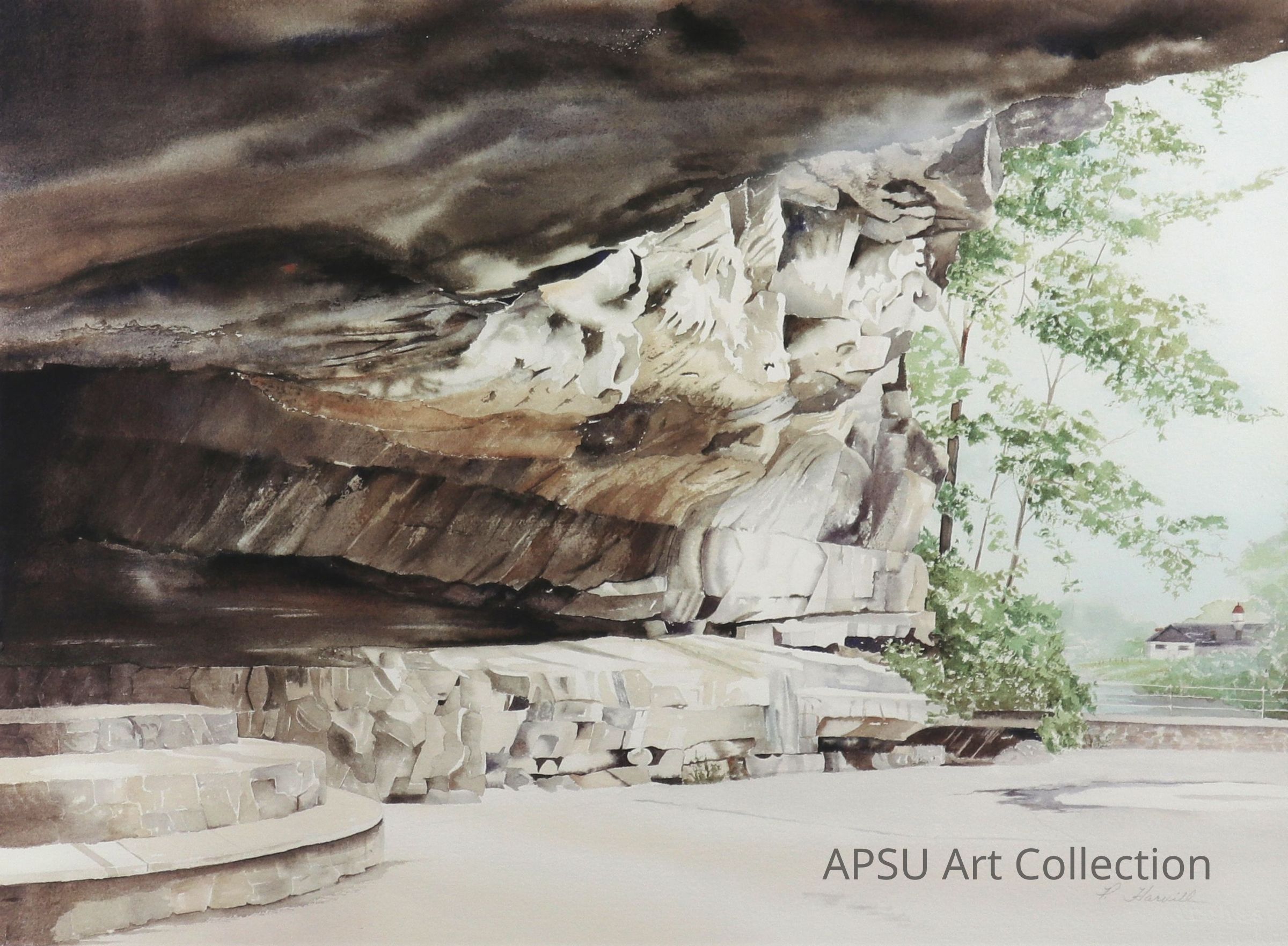 watercolor of Dunbar Cave - view from cave looking out toward pool houseType of Painting