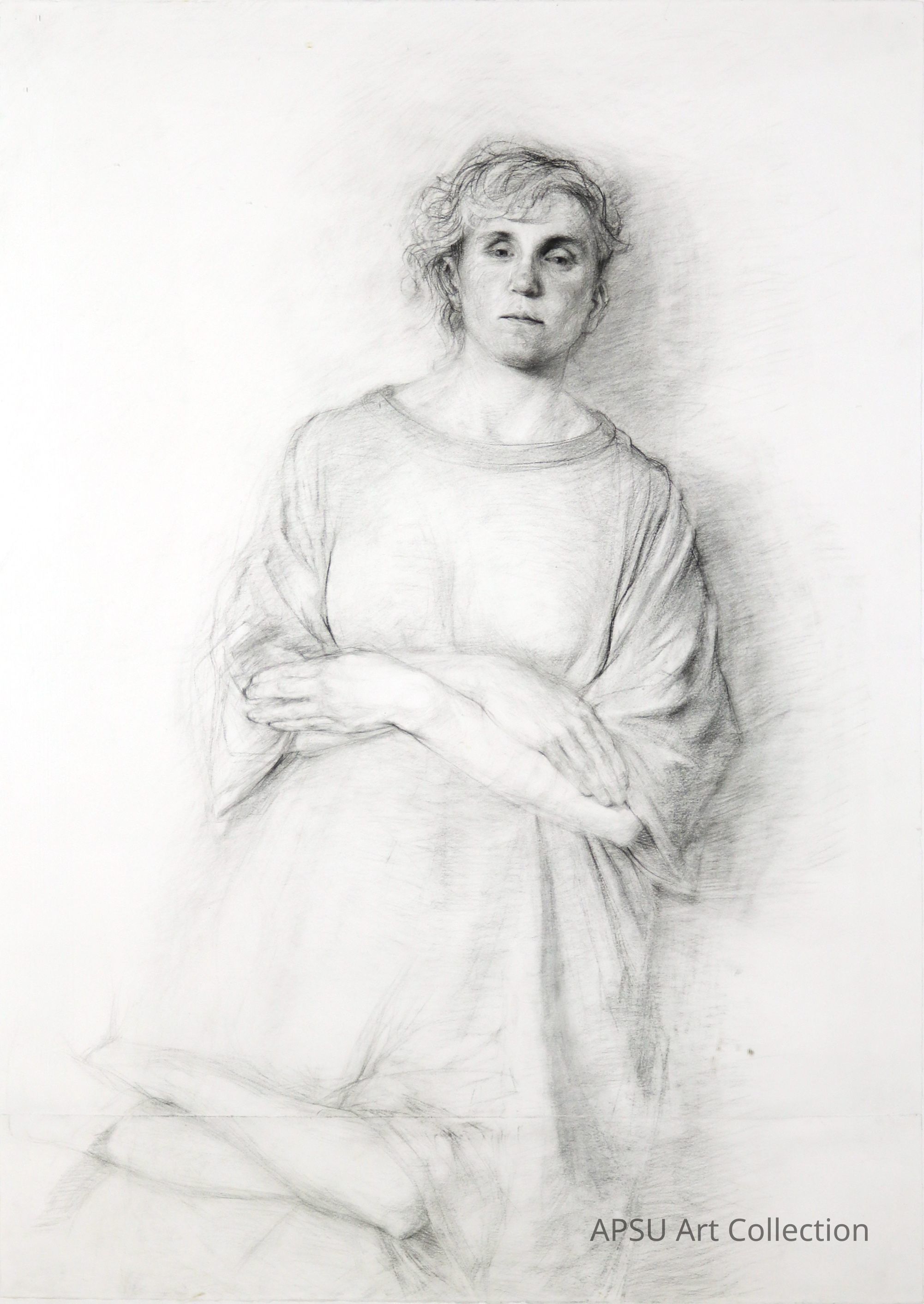 Portrait of a woman with her arms crossed. Two sets of arms in the image, one at the torso and one towards the bottom of the piece