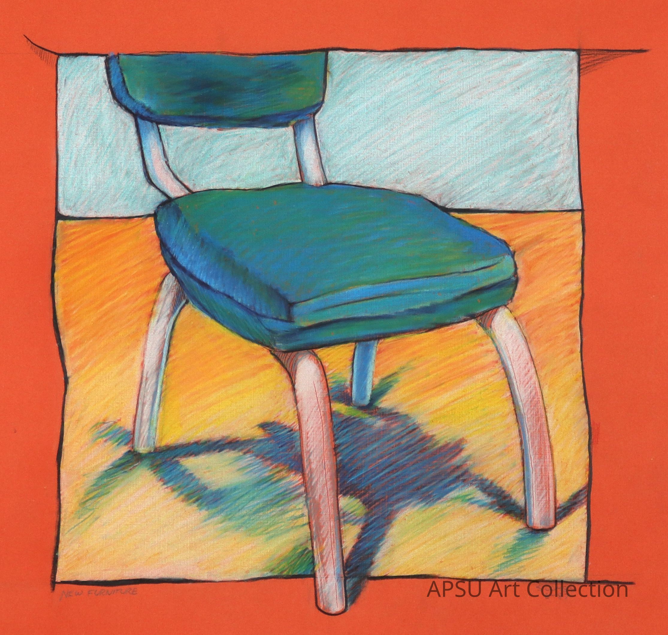 Pastel drawing of a chair on orange illustration board. Dated 6-87Type of Drawing