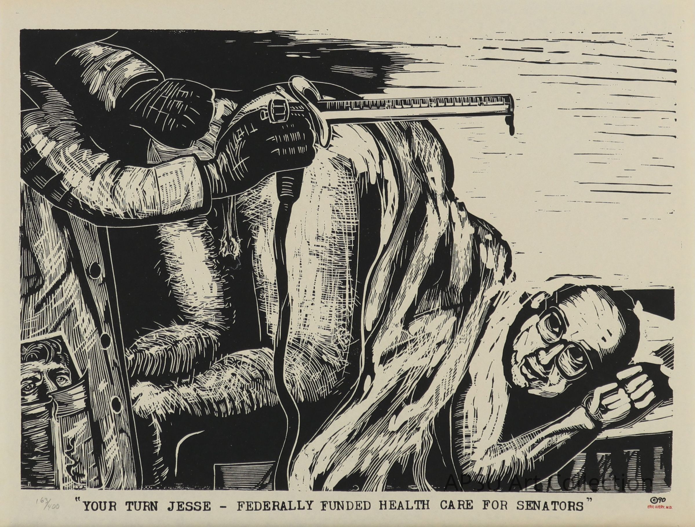Jesse Helms bent over about to receive a dose of something in the rectumType of Print