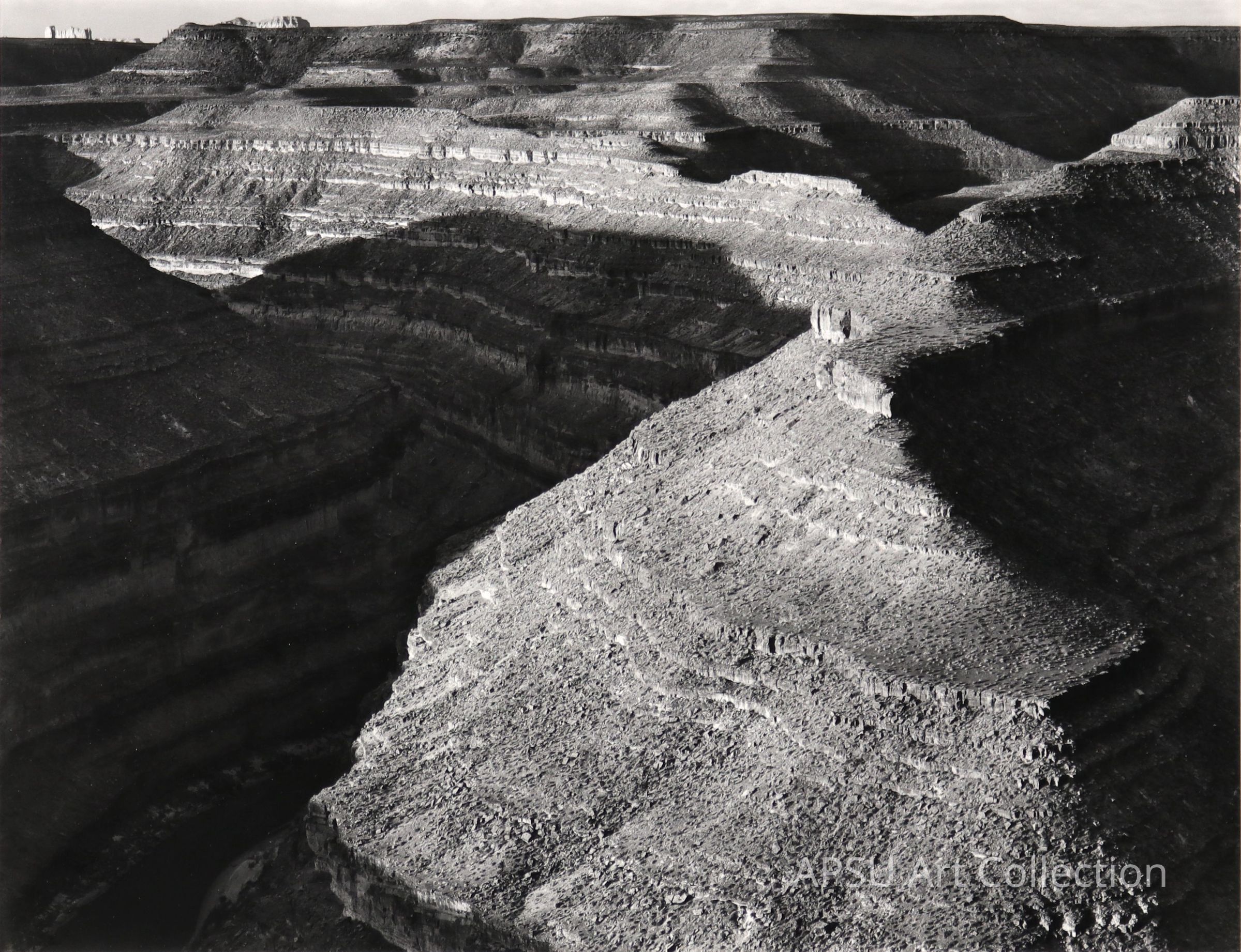 Black and white photograph of the goosenescks of the San Juan River, very curvy and rocky sceneryCollection