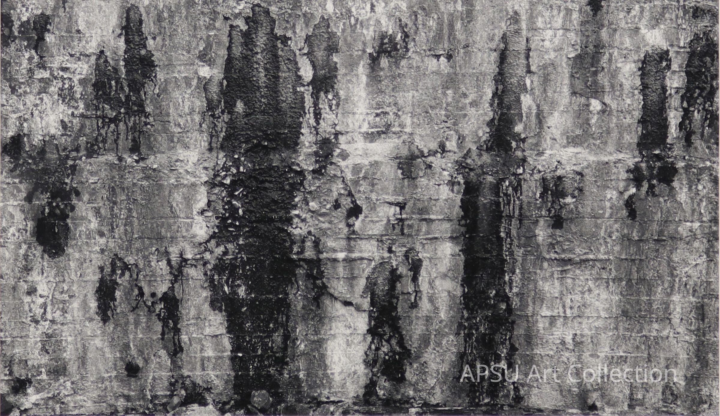 Black and white photograph of a dam in Arizona, it appears to be a very close shot, so it looks like the texture of a stone wallCollection