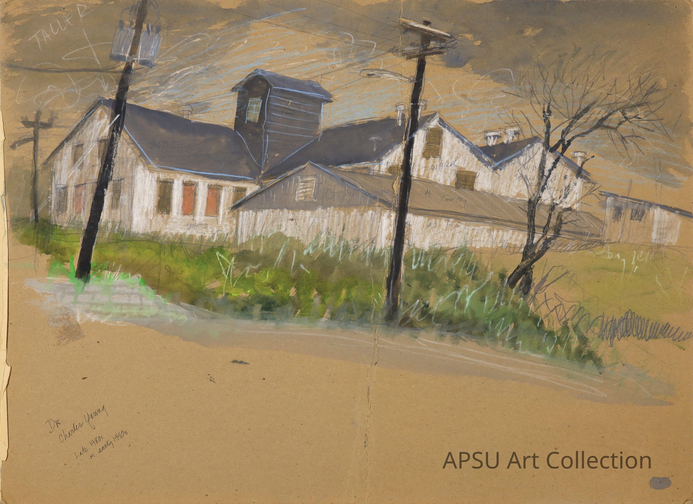 Watercolor on cardboard, white buildings next to a streetType of Painting