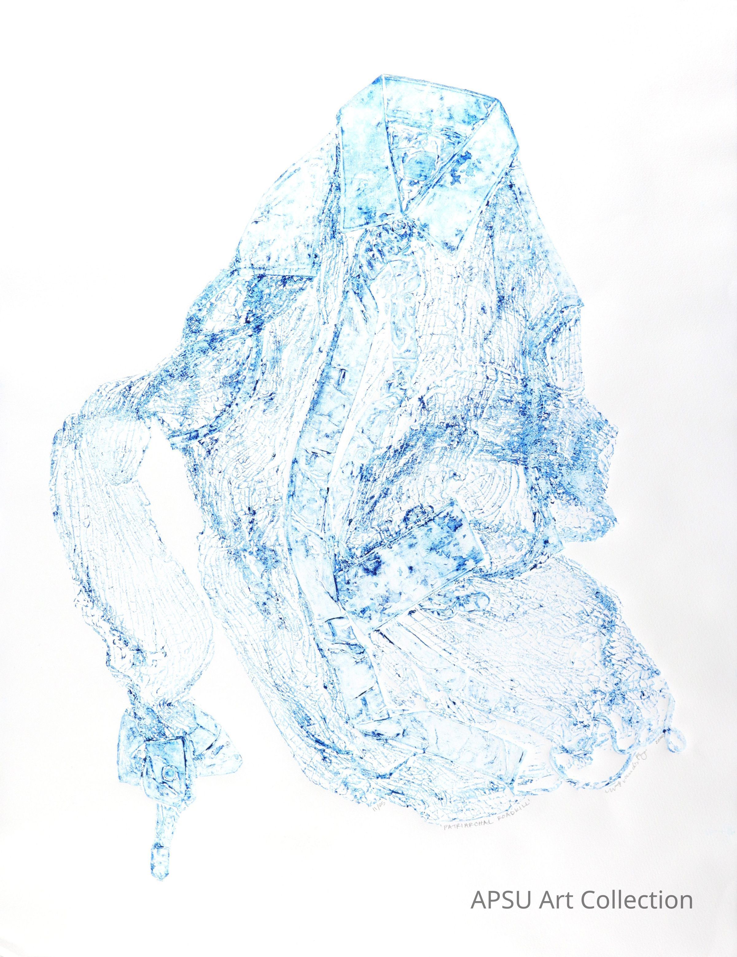 Collagraph of mens dress shirt, made of dissolvable material.Type of Print