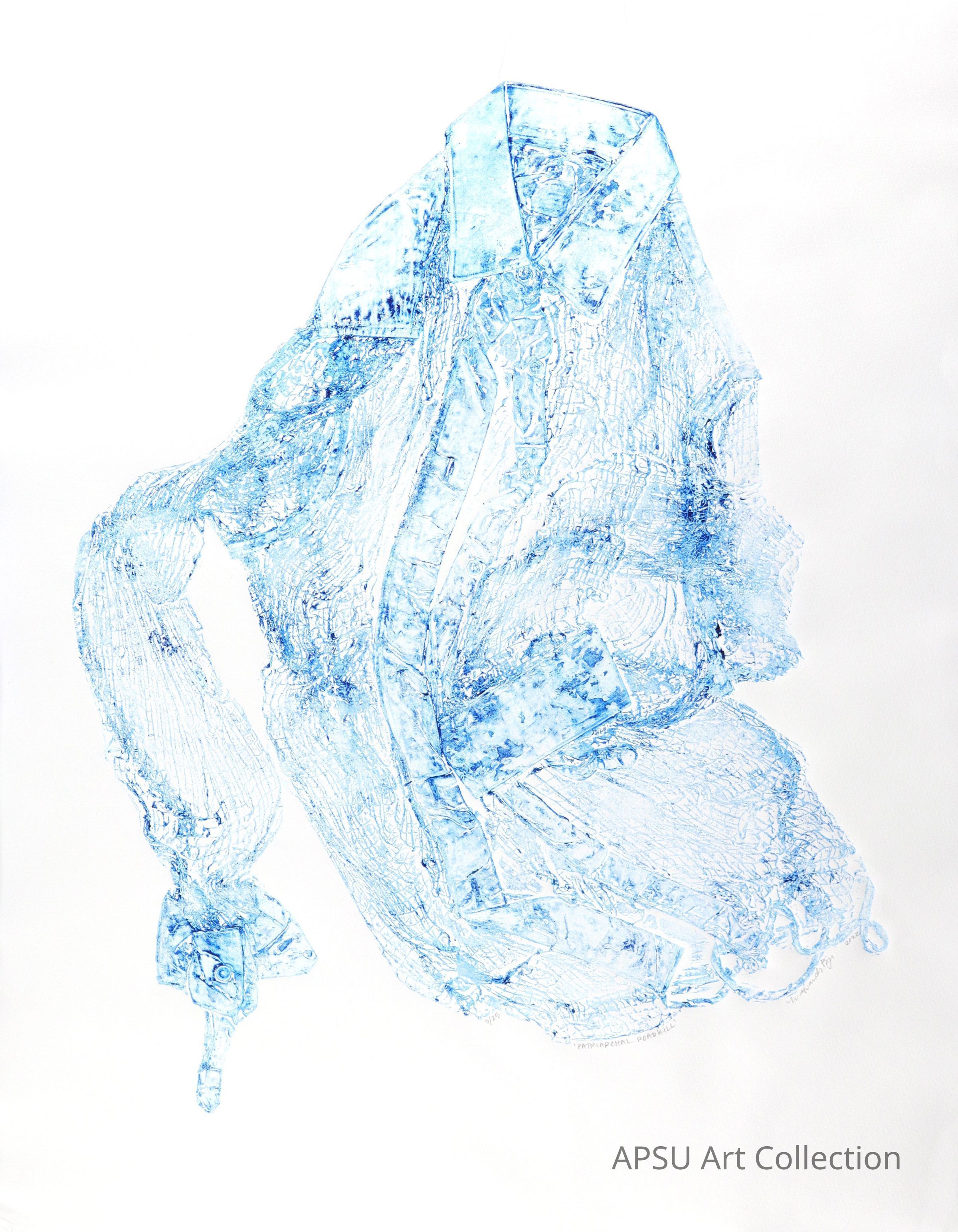 Collagraph of mens dress shirt, made of dissolvable material.Type of Print
