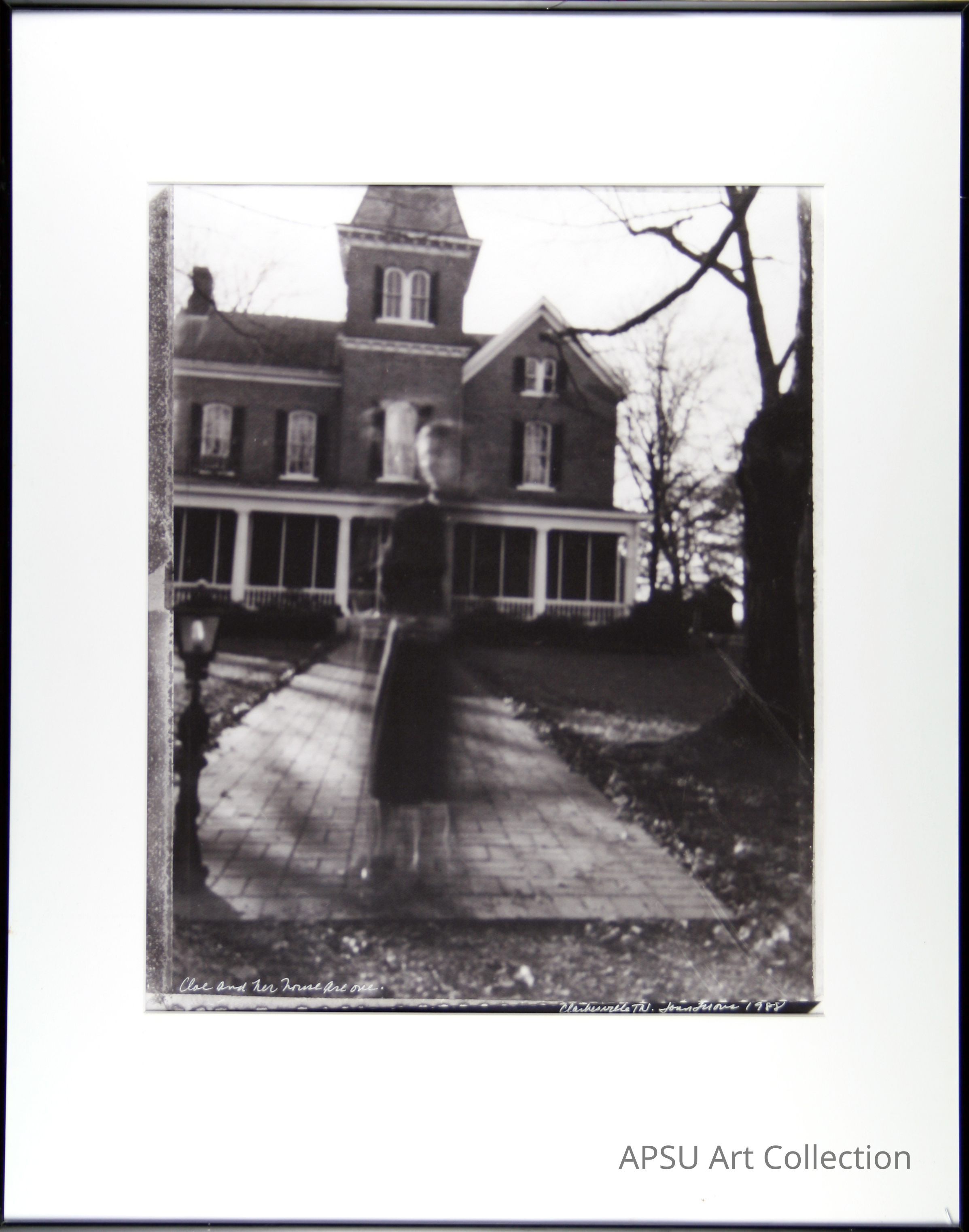 Image of female figure double exposed over image of an old house, Clarksville, TN 1988Collection