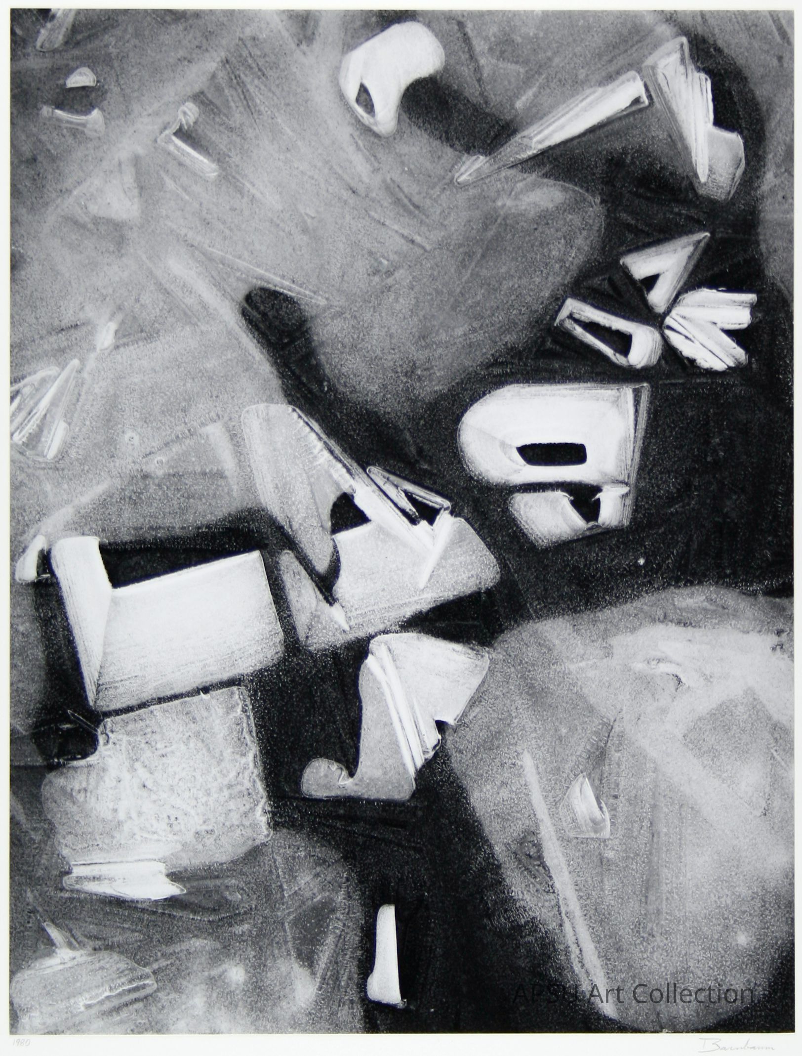 Black and white gelatin silver print of the geometric non-representational shapes formed by iceCollection