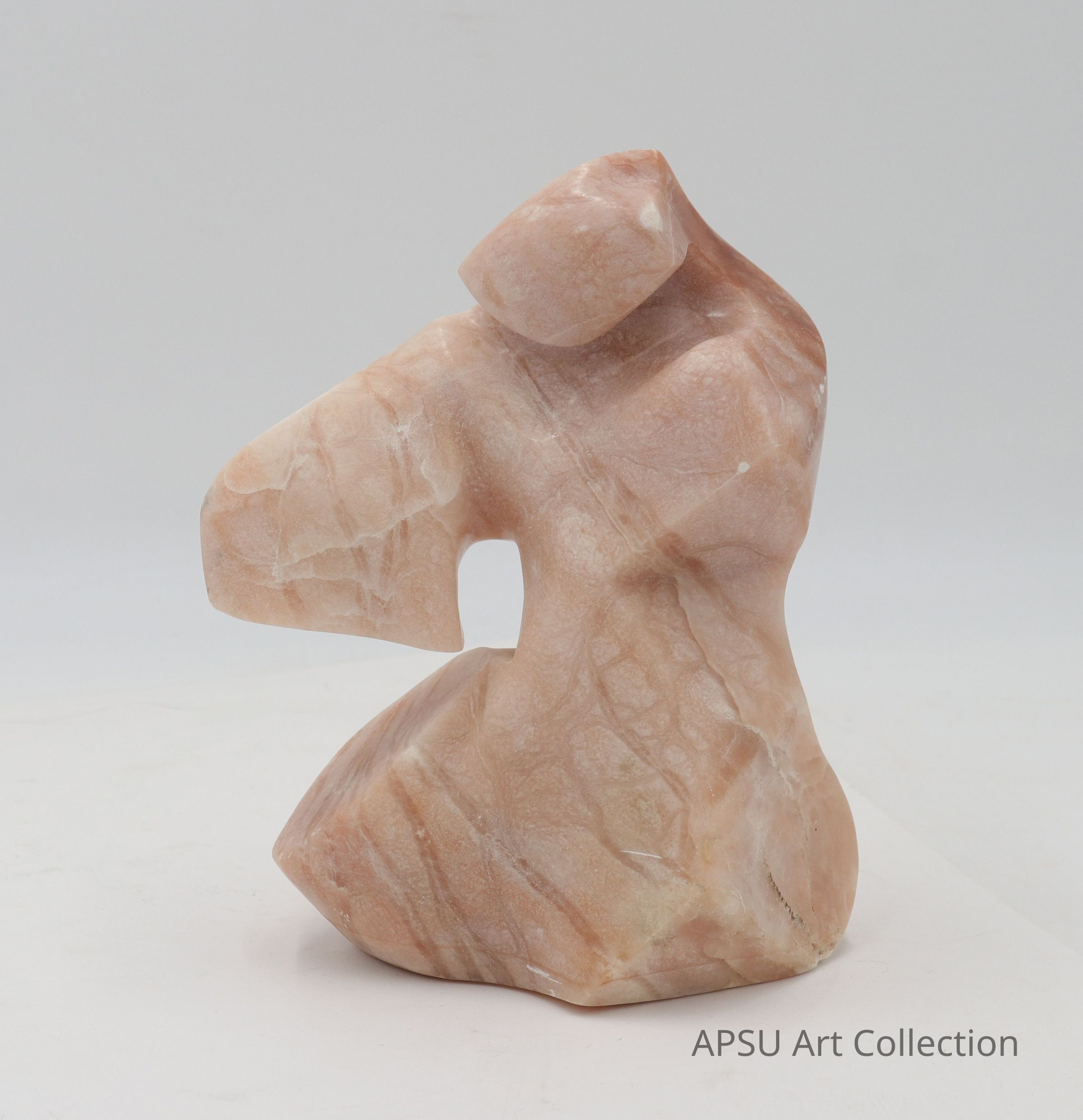 Abstract sculpture of female figure, carved alabaster. Stone is light pink color.Artwork Details