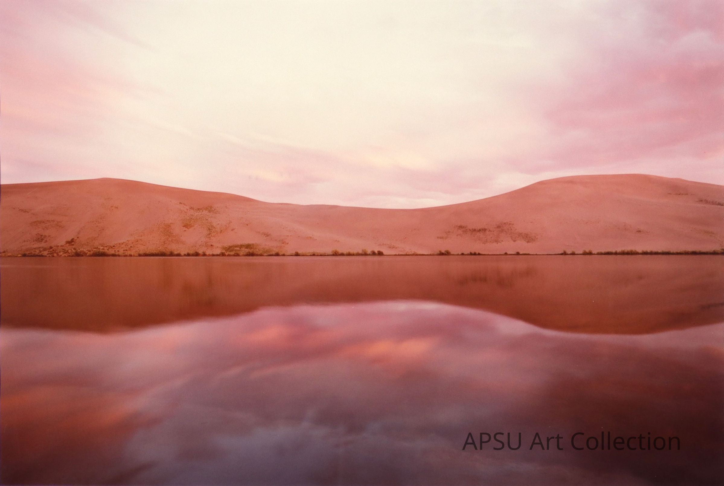 Color photograph from the Robertson collection, landscape at sunset of a lake in the desert.Collection