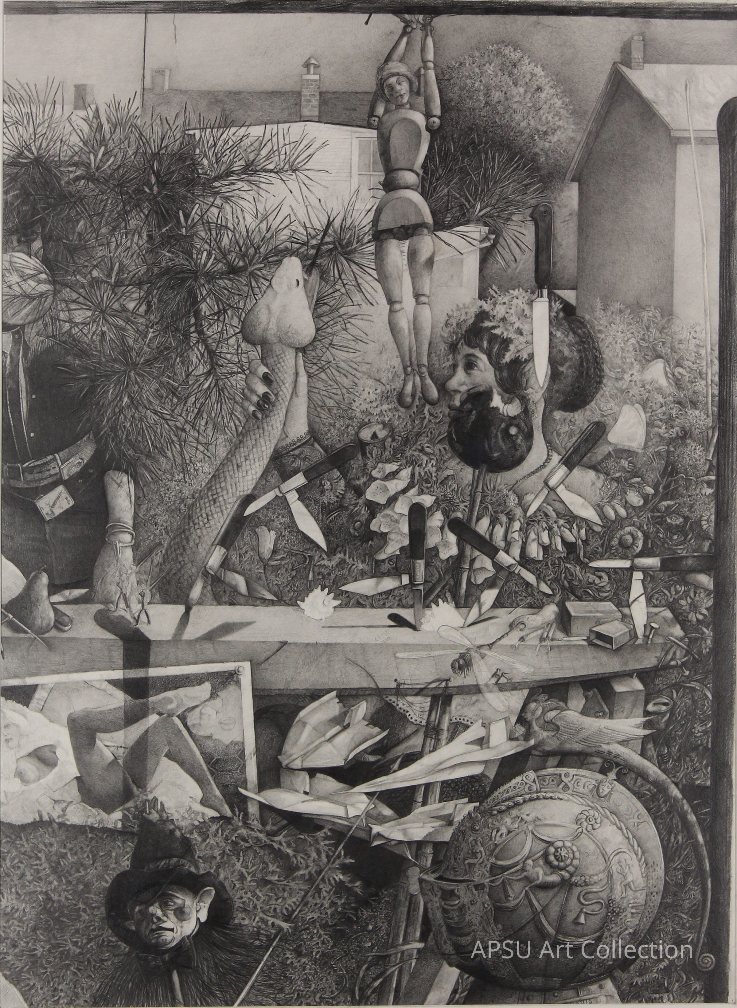 William D. Davis, "Mumblety Peg and Other Games Boys Play", Graphite drawing, Border to Border 9 2003Type of Drawing